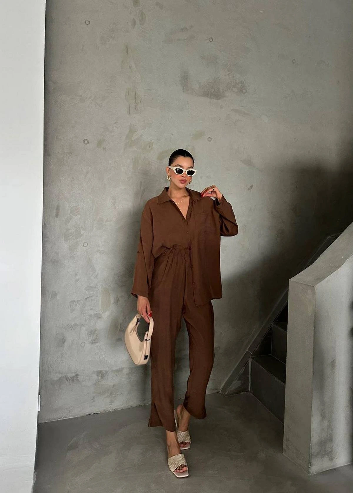 SALAŞ GÖMLEK YIRTMAÇ PANTOLON TAKIM – KAHVE