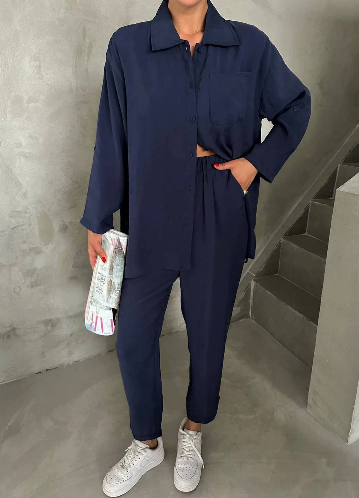 SALAŞ GÖMLEK YIRTMAÇ PANTOLON TAKIM – LACİVERT
