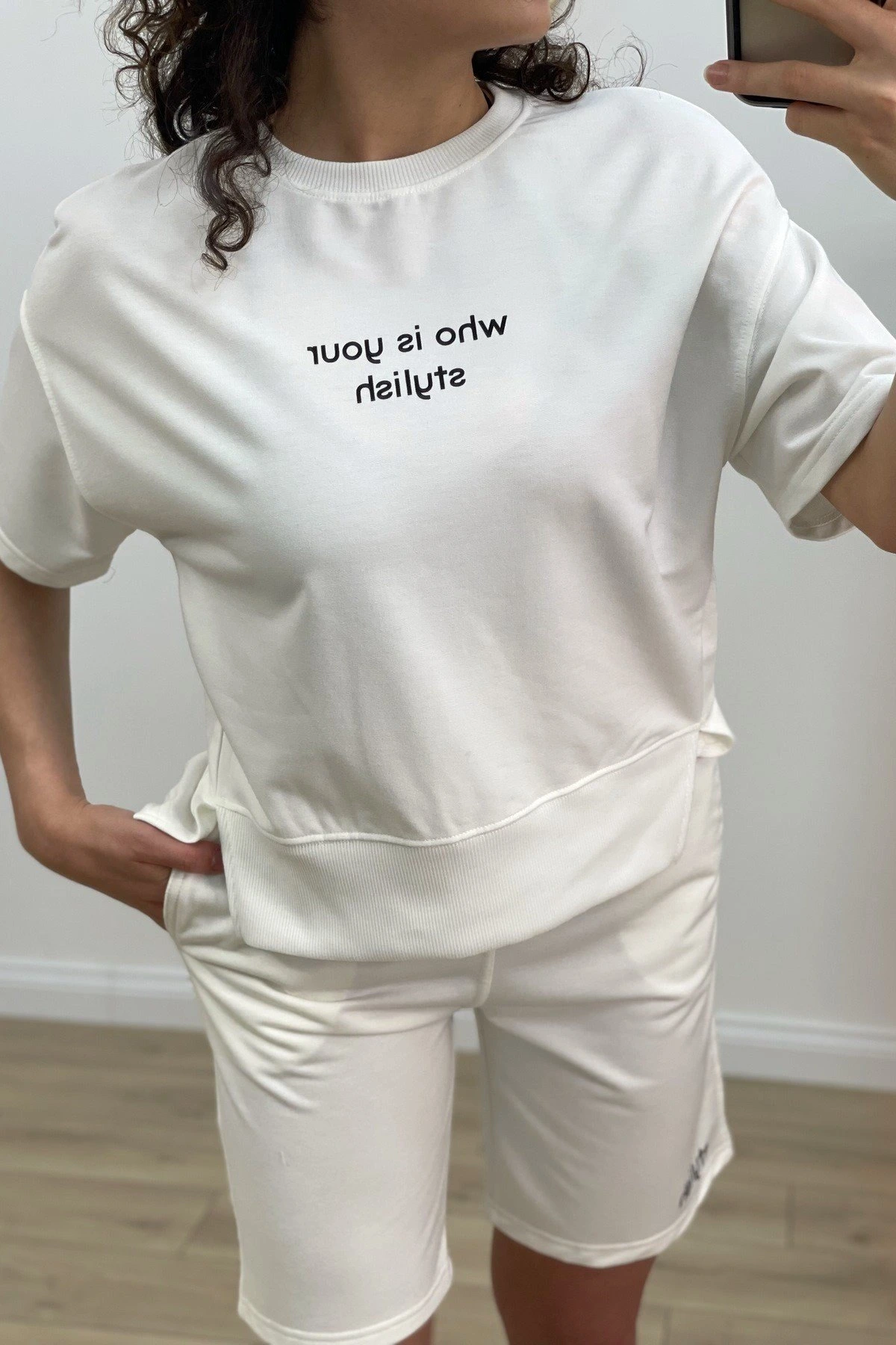STYLİSH TİŞÖRT ŞORT DOKUMA TAKIM – EKRU