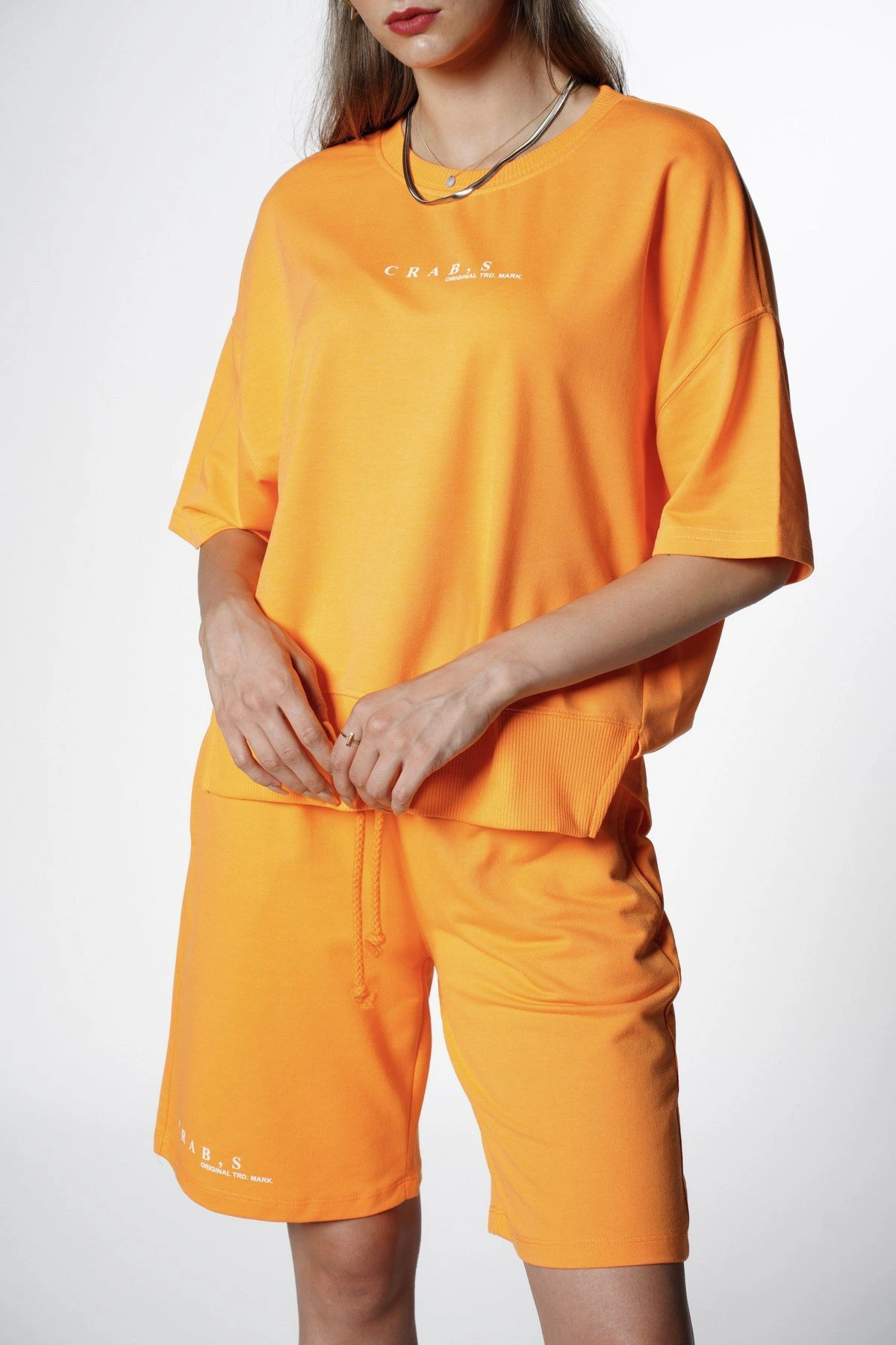 STYLİSH TİŞÖRT ŞORT DOKUMA TAKIM – NEON TURUNCU