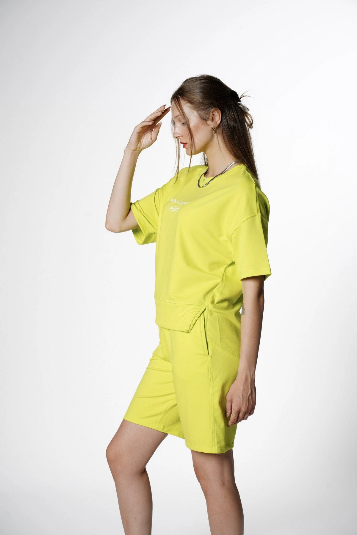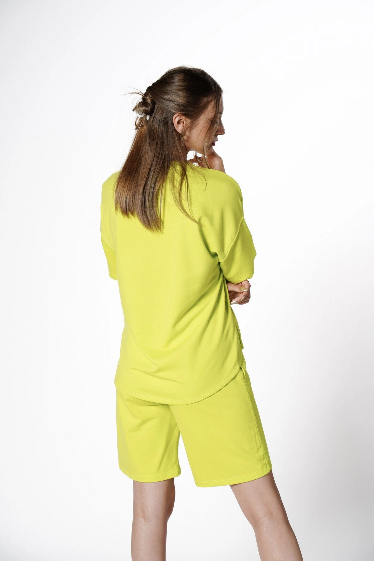 STYLİSH TİŞÖRT ŞORT DOKUMA TAKIM – NEON YEŞİL
