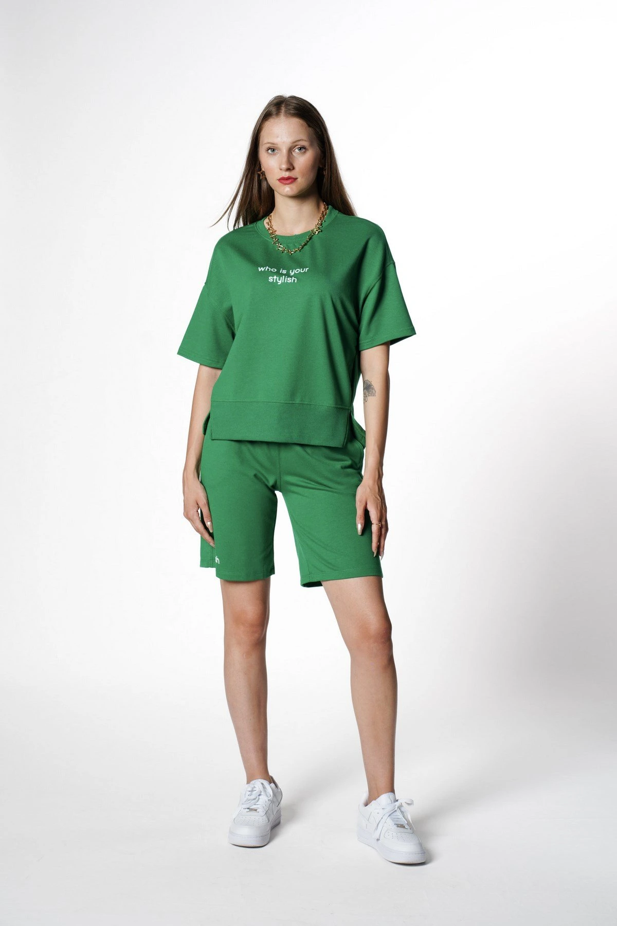 STYLİSH TİŞÖRT ŞORT DOKUMA TAKIM – YEŞİL
