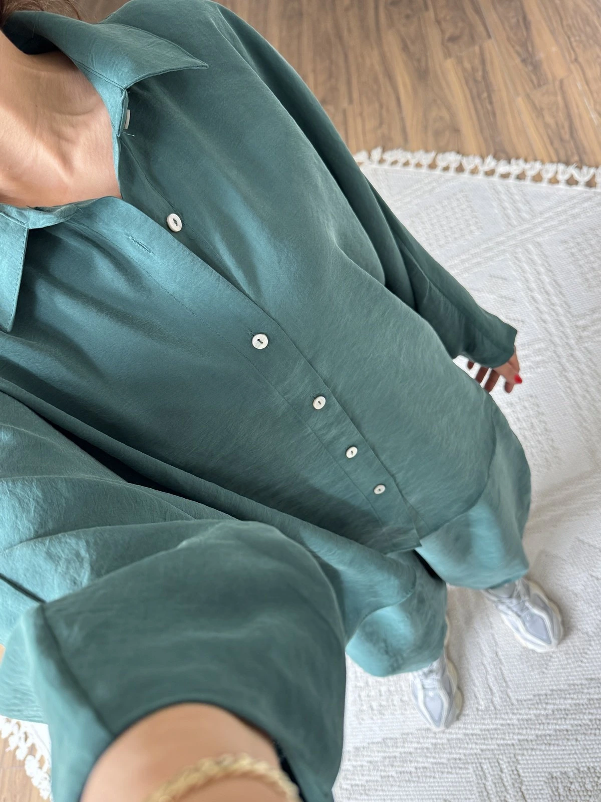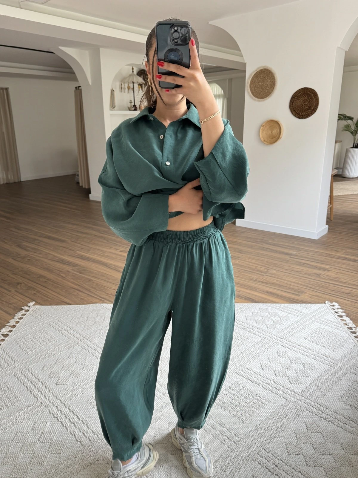 TRUVAKAR KOL GÖMLEK BALON PANTOLON MODAL TAKIM – ZÜMRÜT YEŞİL