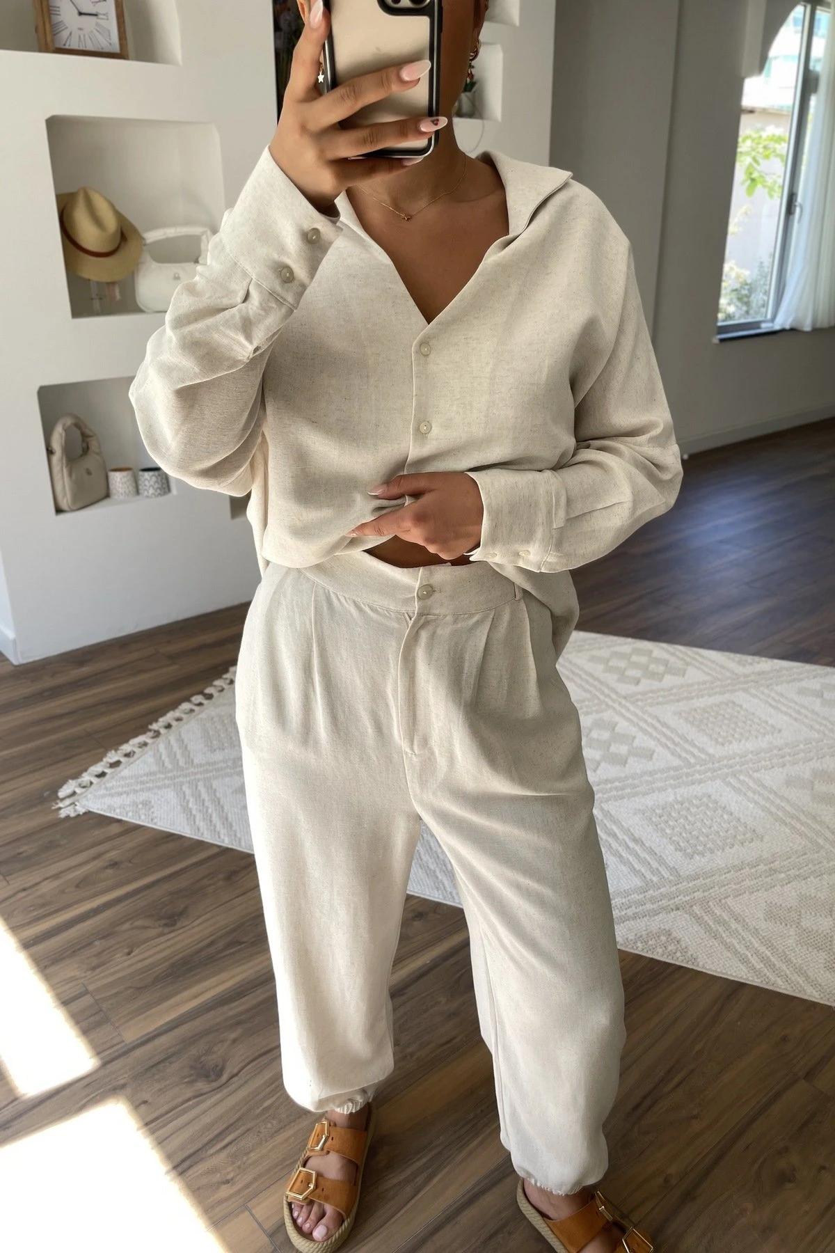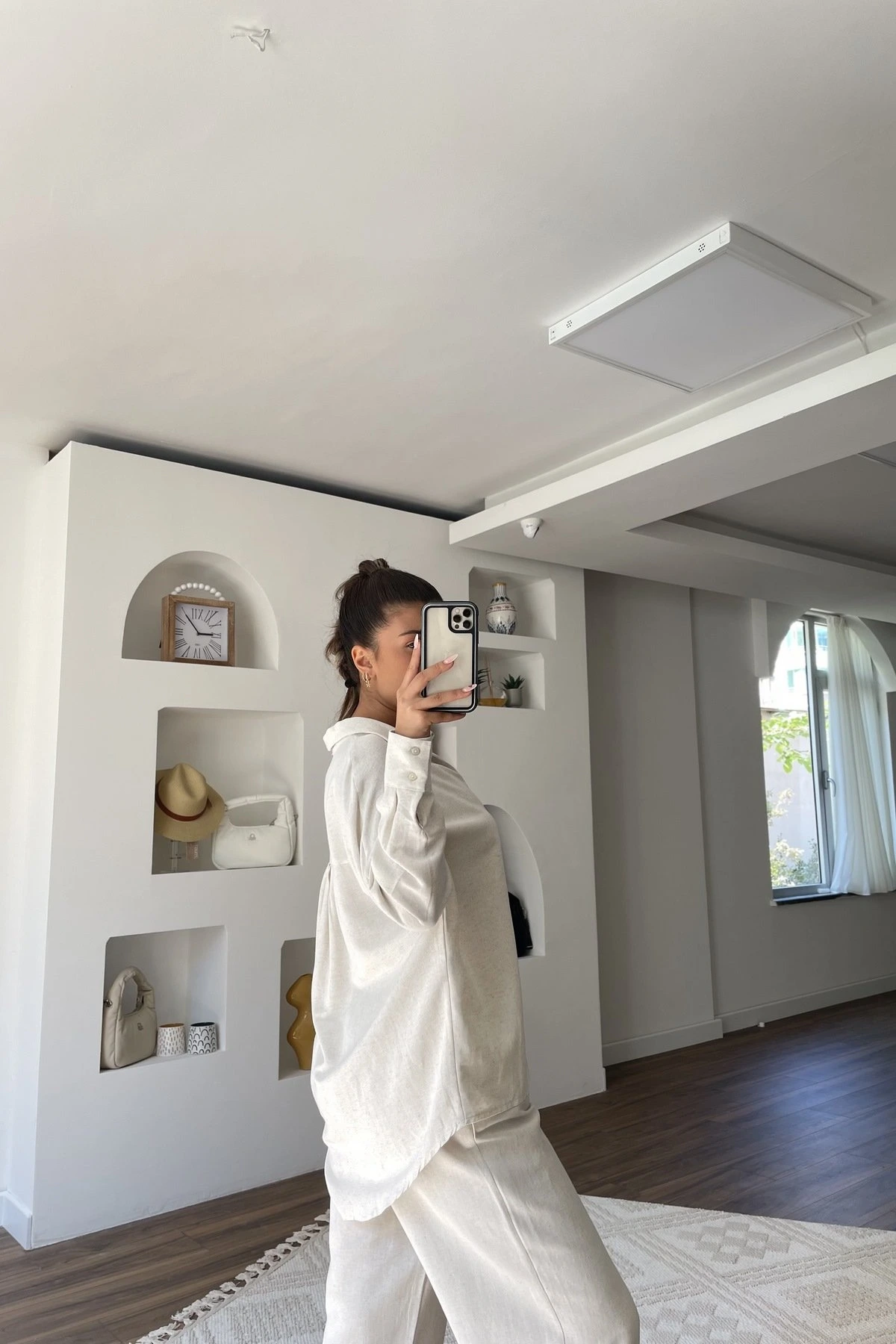 V YAKA GÖMLEK BİLEK LASTİK PANTOLON VİSKON TAKIM – TAŞ