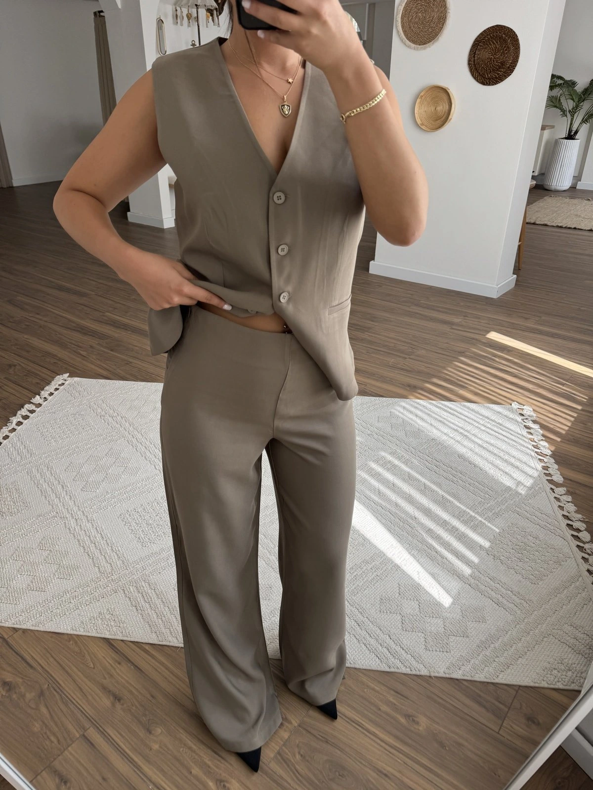 V YAKA YELEK PANTOLON TENSEL VİSKON TAKIM – HAKİ