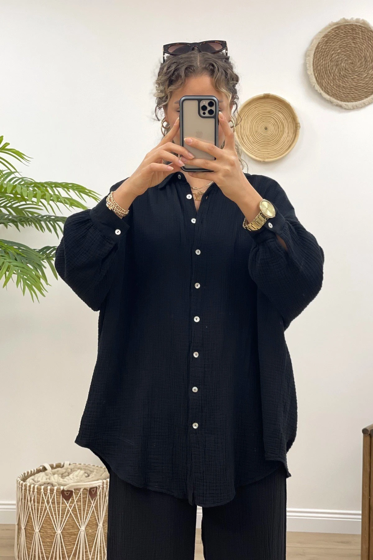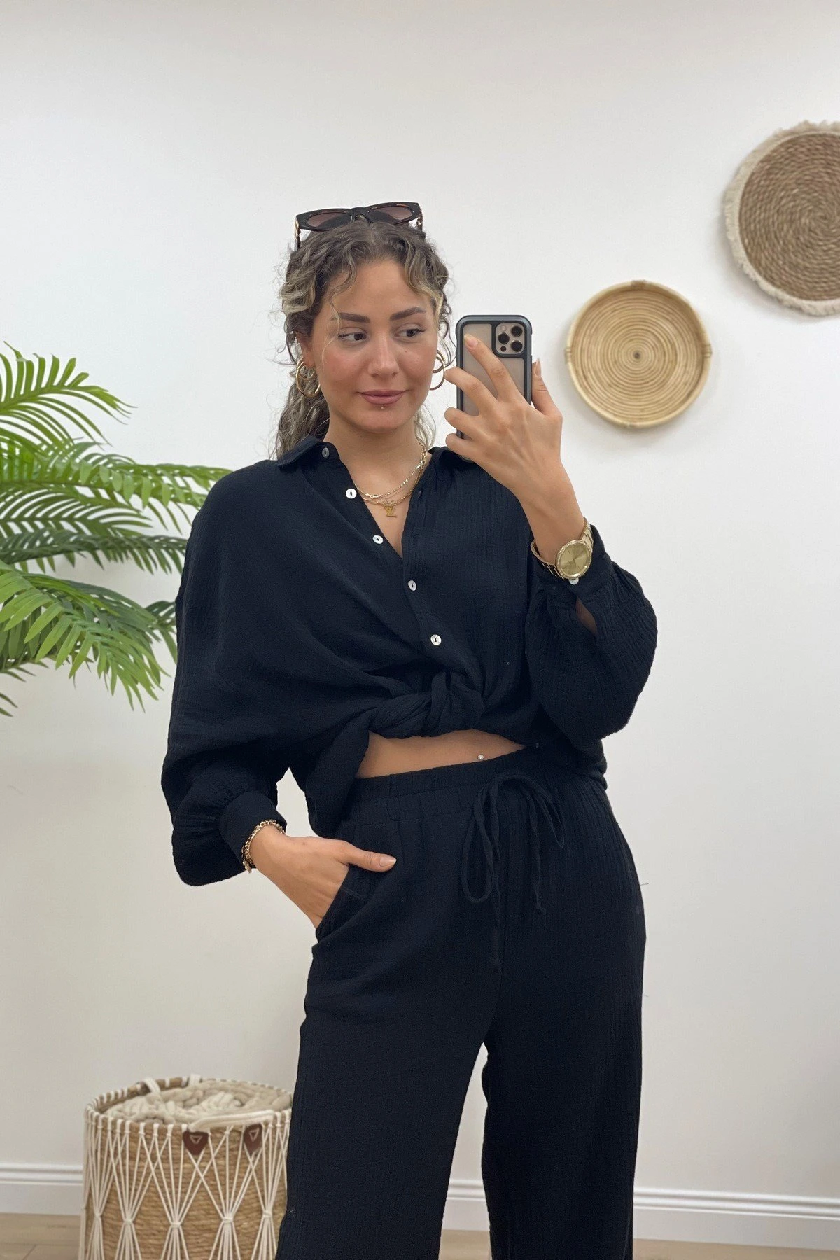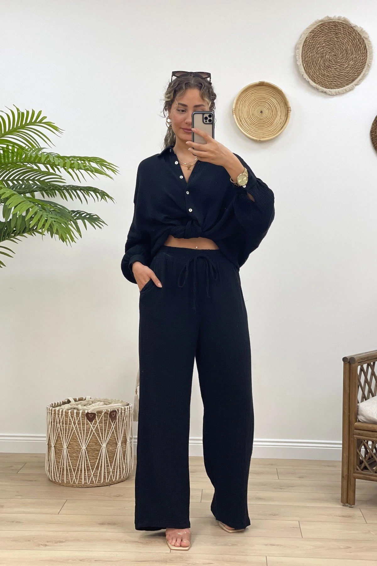 VİSKON GÖMLEK PANTOLON TAKIM – SİYAH