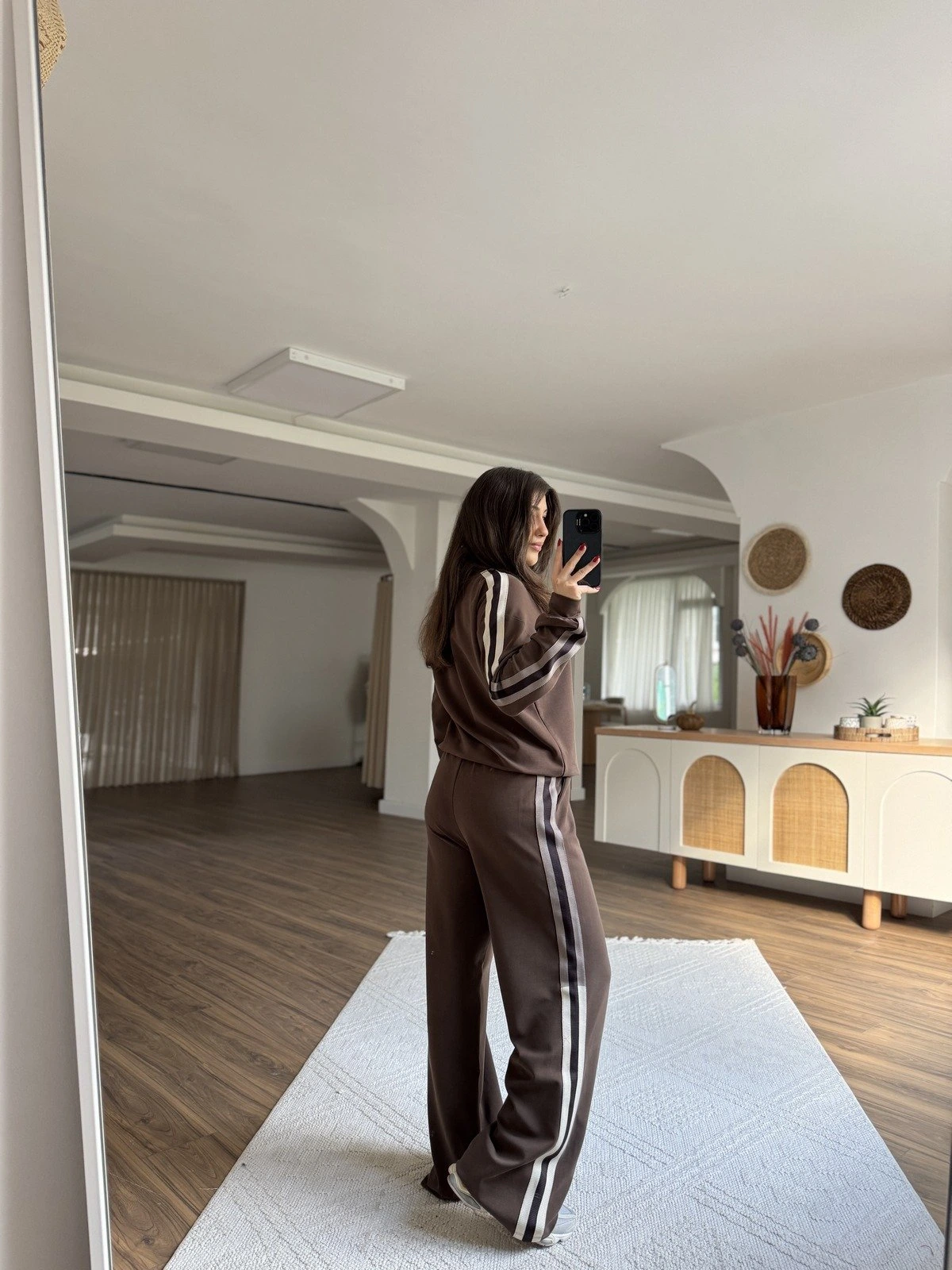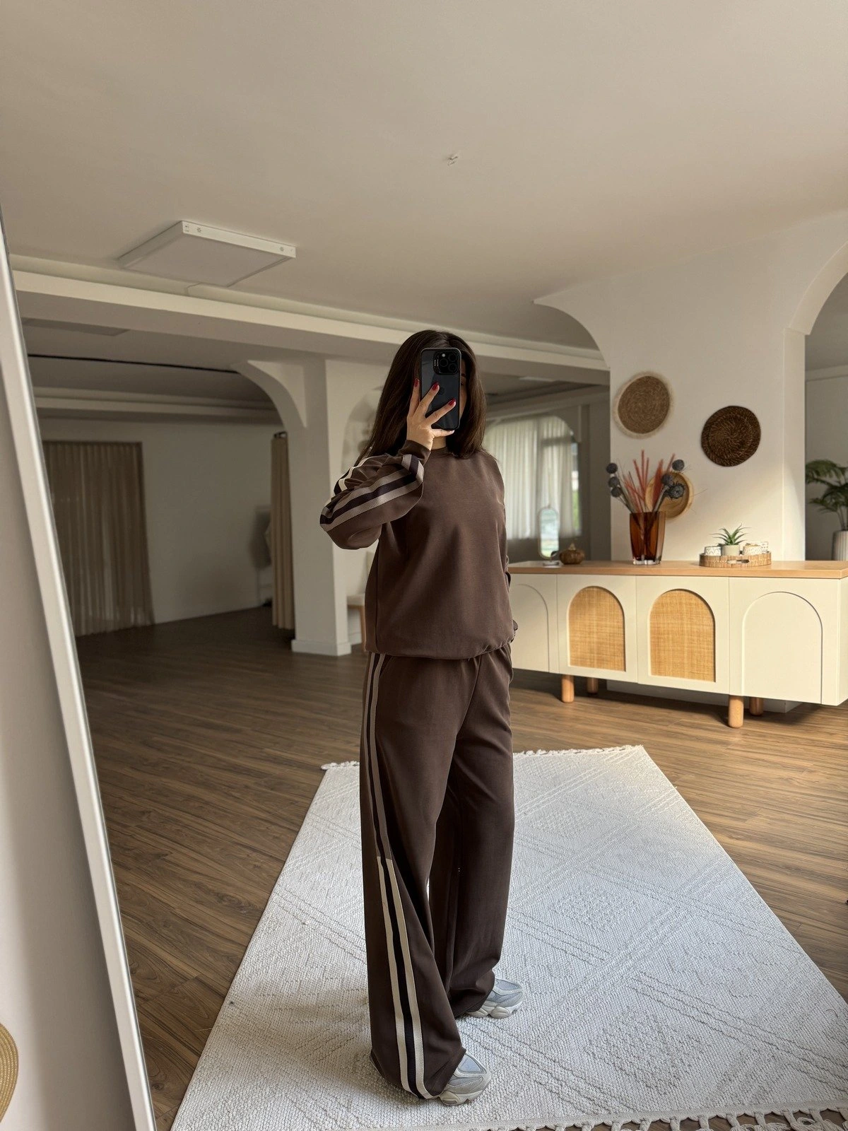 YAN DOKUMA ŞERİT MODAL EŞOFMAN TAKIM – KAHVE