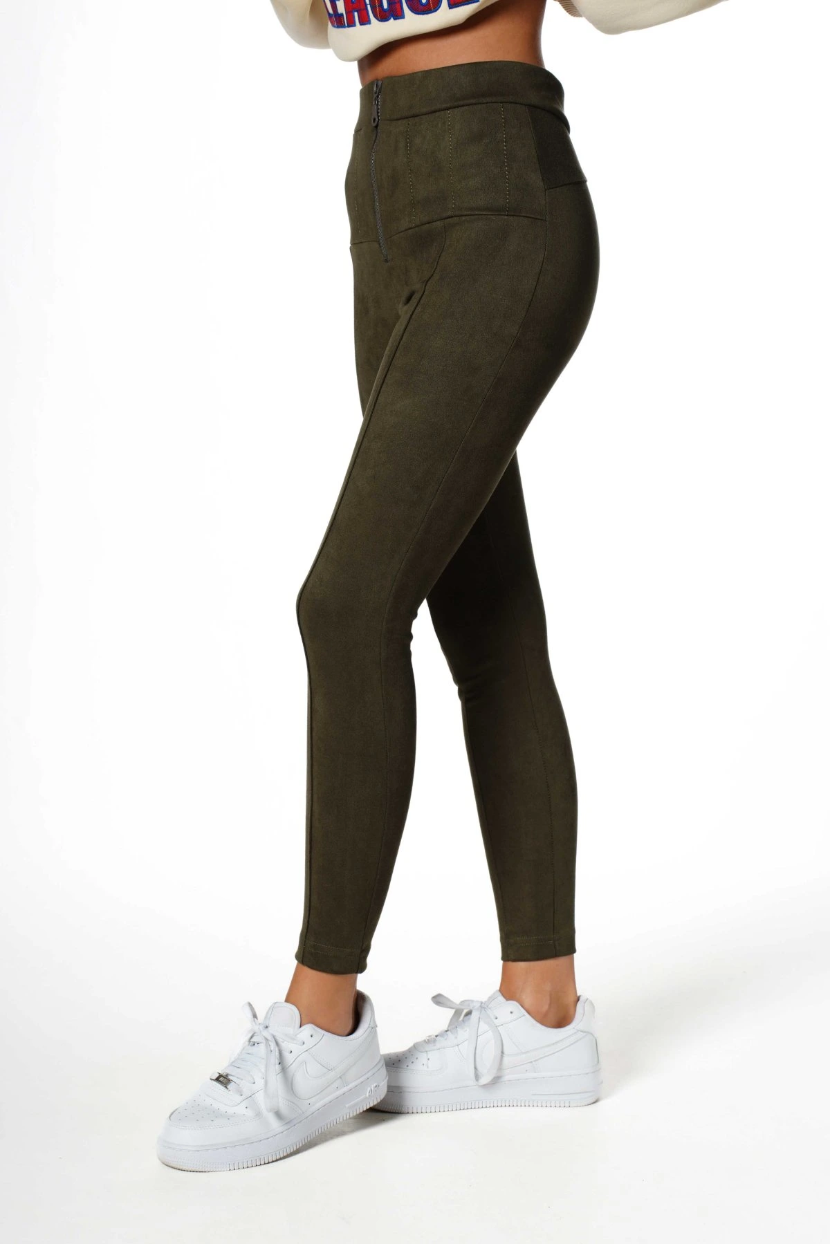 FERMUARLI SÜET ÖN DİKİŞ TAYT – HAKİ