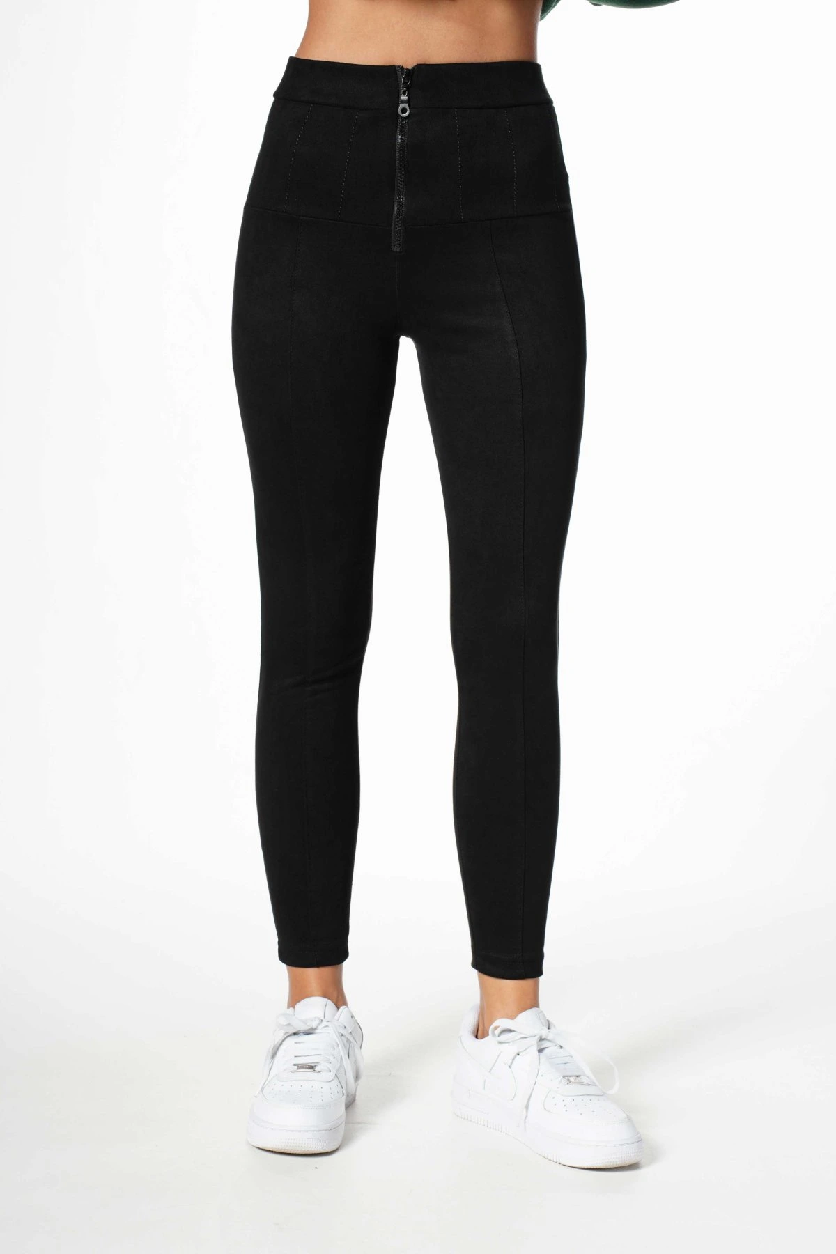 FERMUARLI SÜET ÖN DİKİŞ TAYT – SİYAH