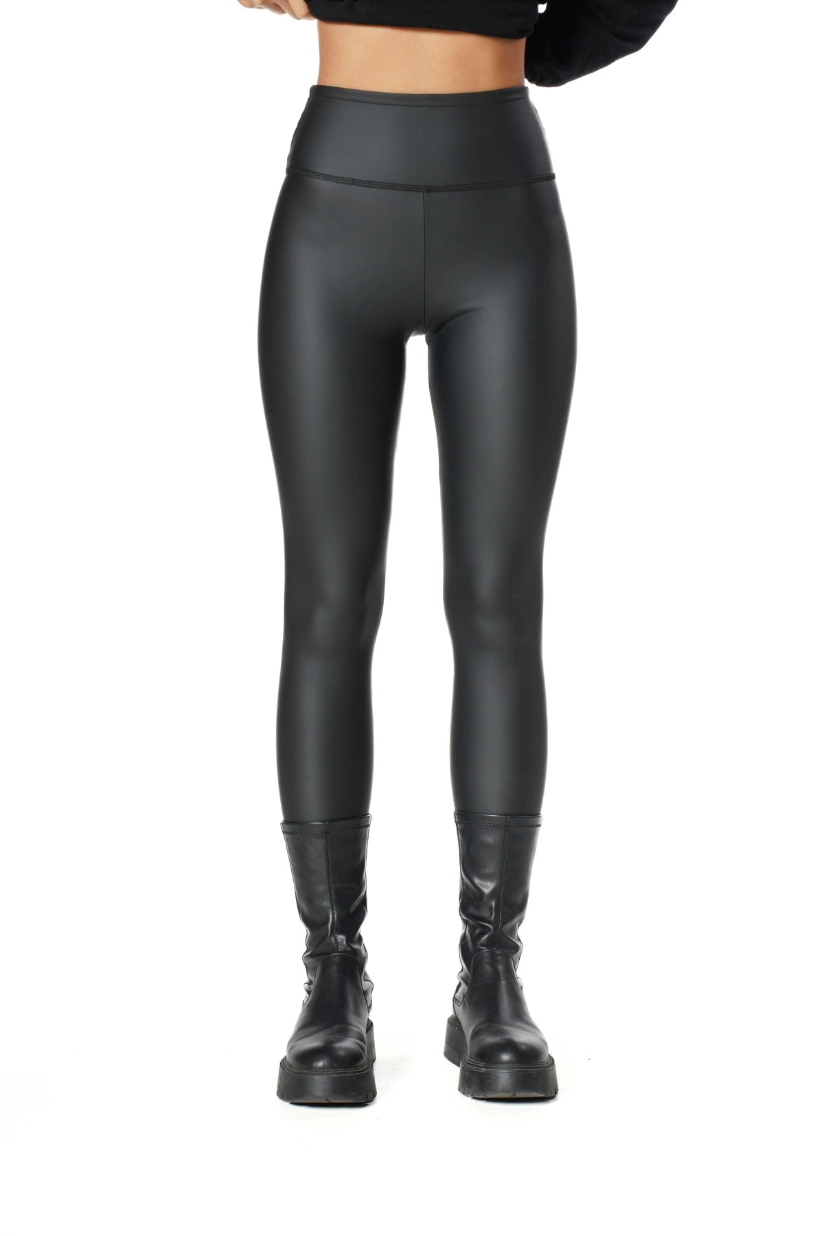 GENİŞ KEMER MAT DERİ ŞARDONLU TAYT – SİYAH
