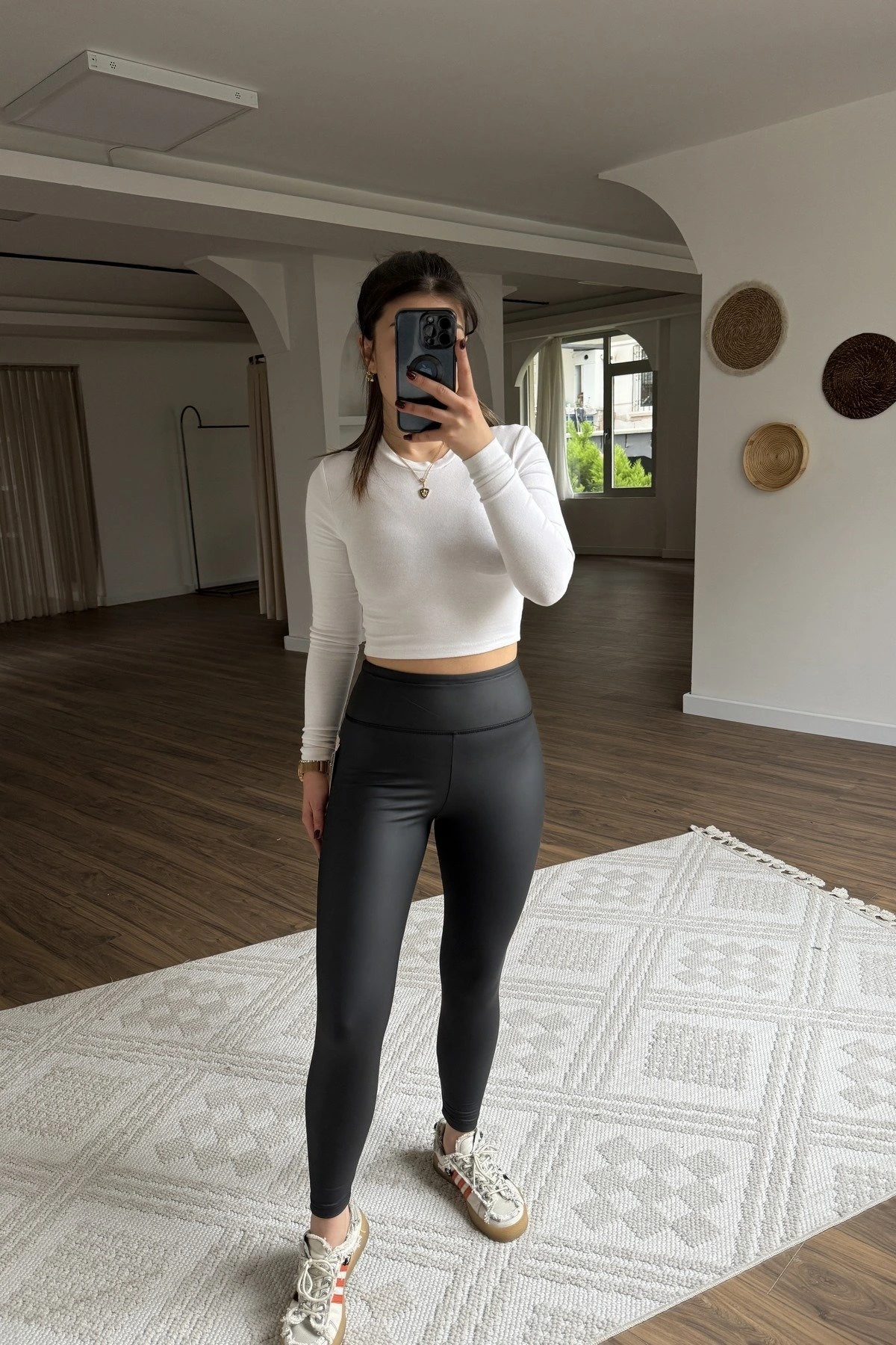 GENİŞ KEMER MAT DERİ ŞARDONLU TAYT – SİYAH