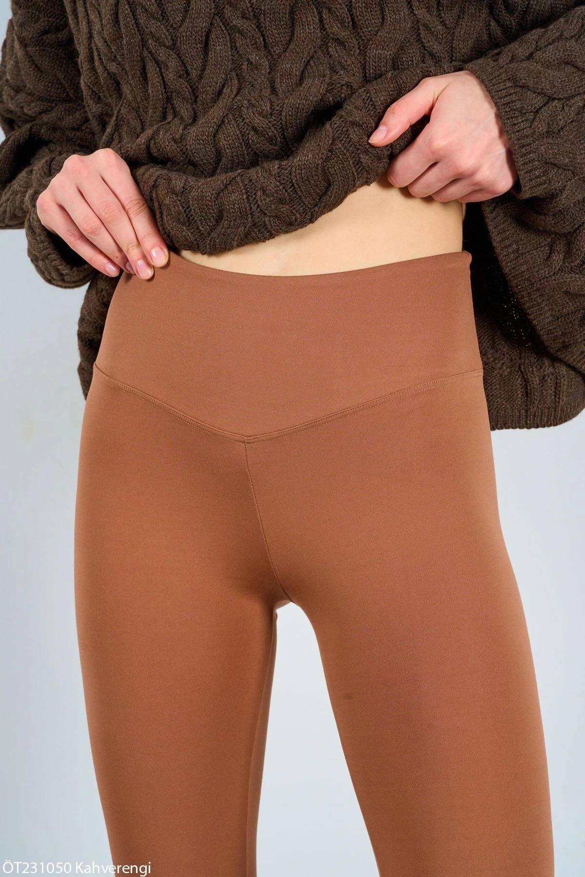 GENİŞ KEMER OYSHO KUMAŞ TAYT – KAHVE