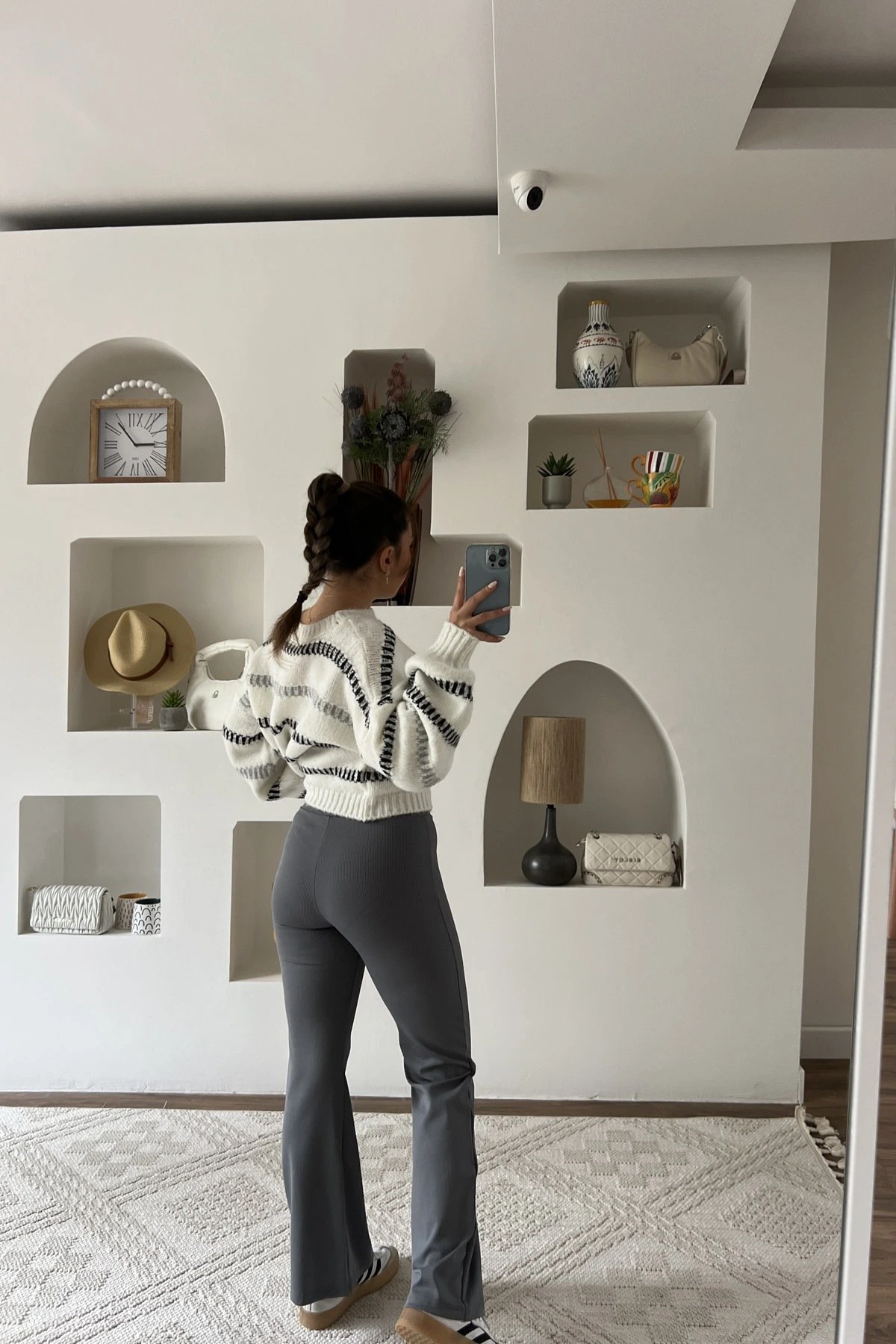 KALIN KEMER FİTİTLLİ BOL PAÇA TAYT – KOYU GRİ