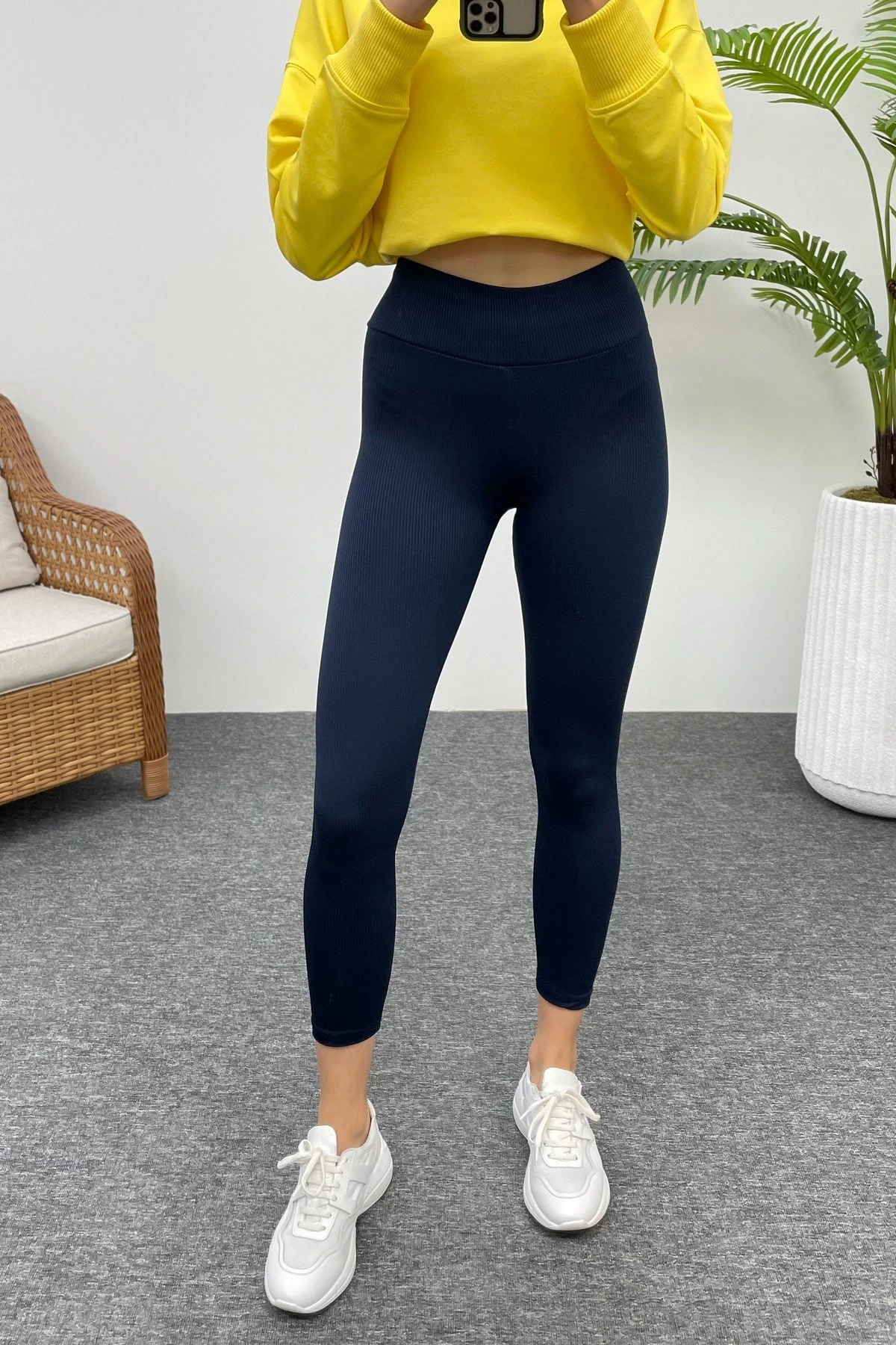 ŞARDONLU KAŞKORSELİ TAYT – LACİVERT