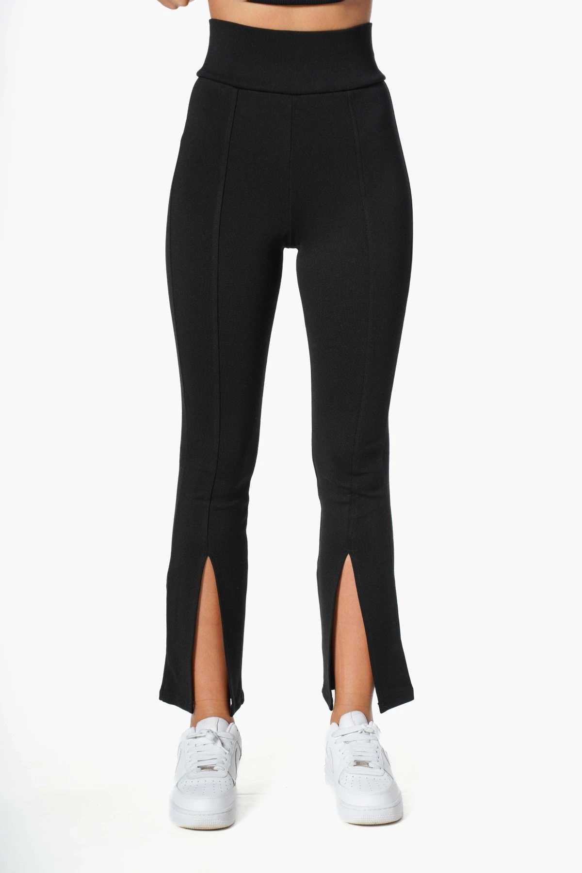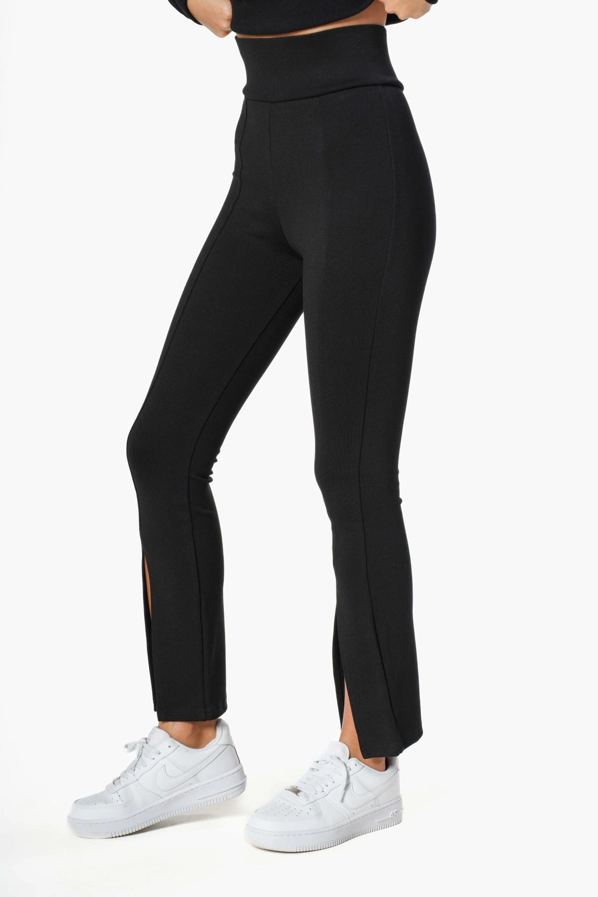 YÜKSEK BEL ÖN YIRTMAÇLI BİLEK BOY TAYT PANTOLON – SİYAH