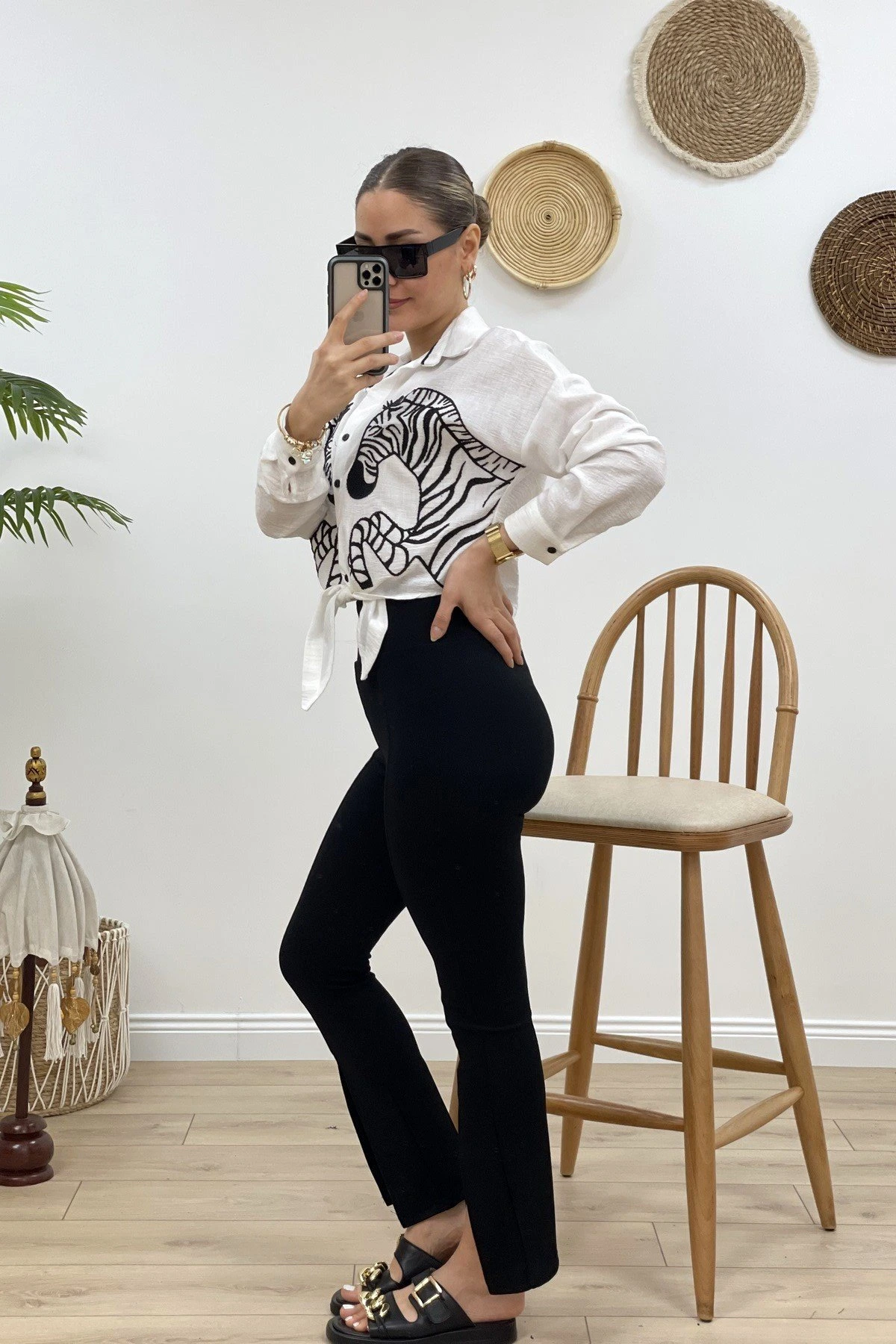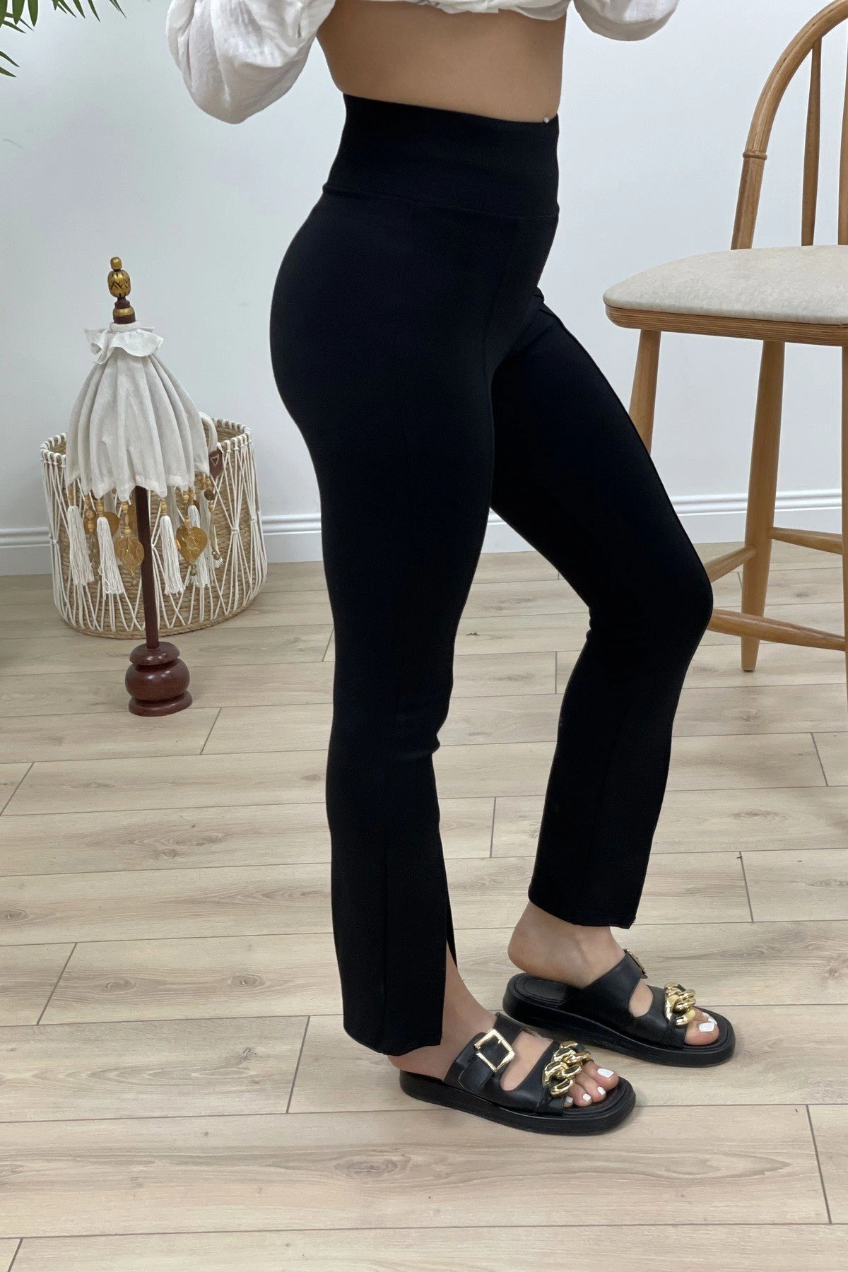 YÜKSEK BEL YIRTMAÇLI TAYT – SİYAH