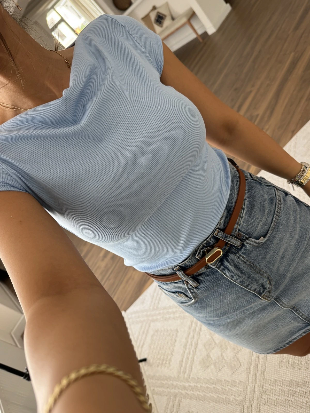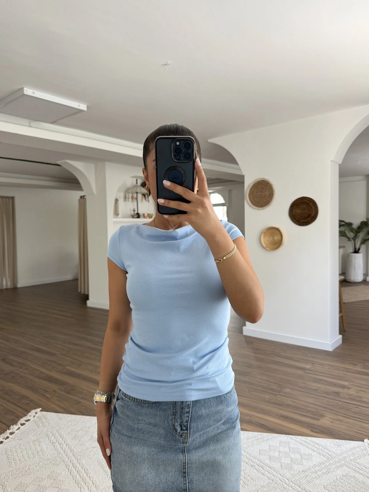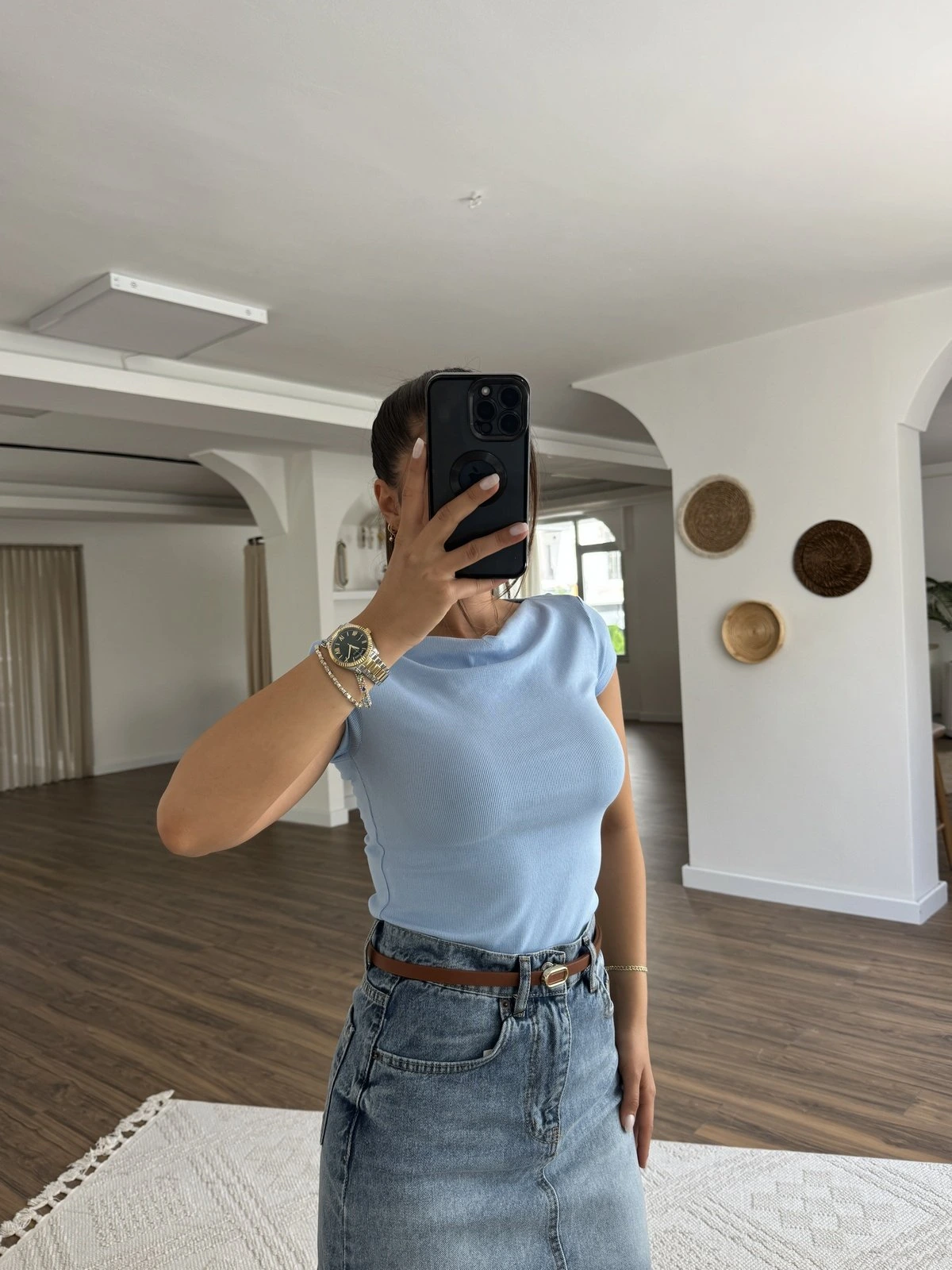 KAYIK KAT YAKA LİKRALI VİSKON TİŞÖRT – MAVİ