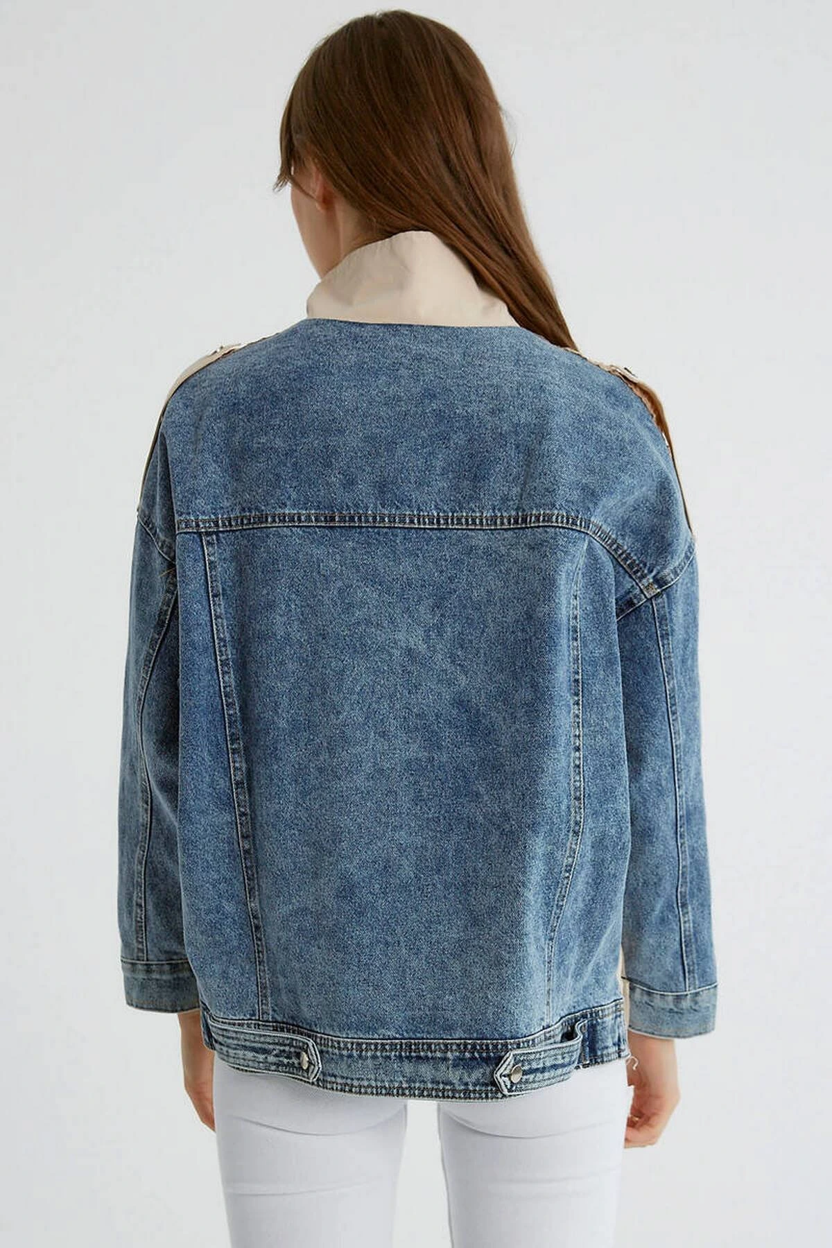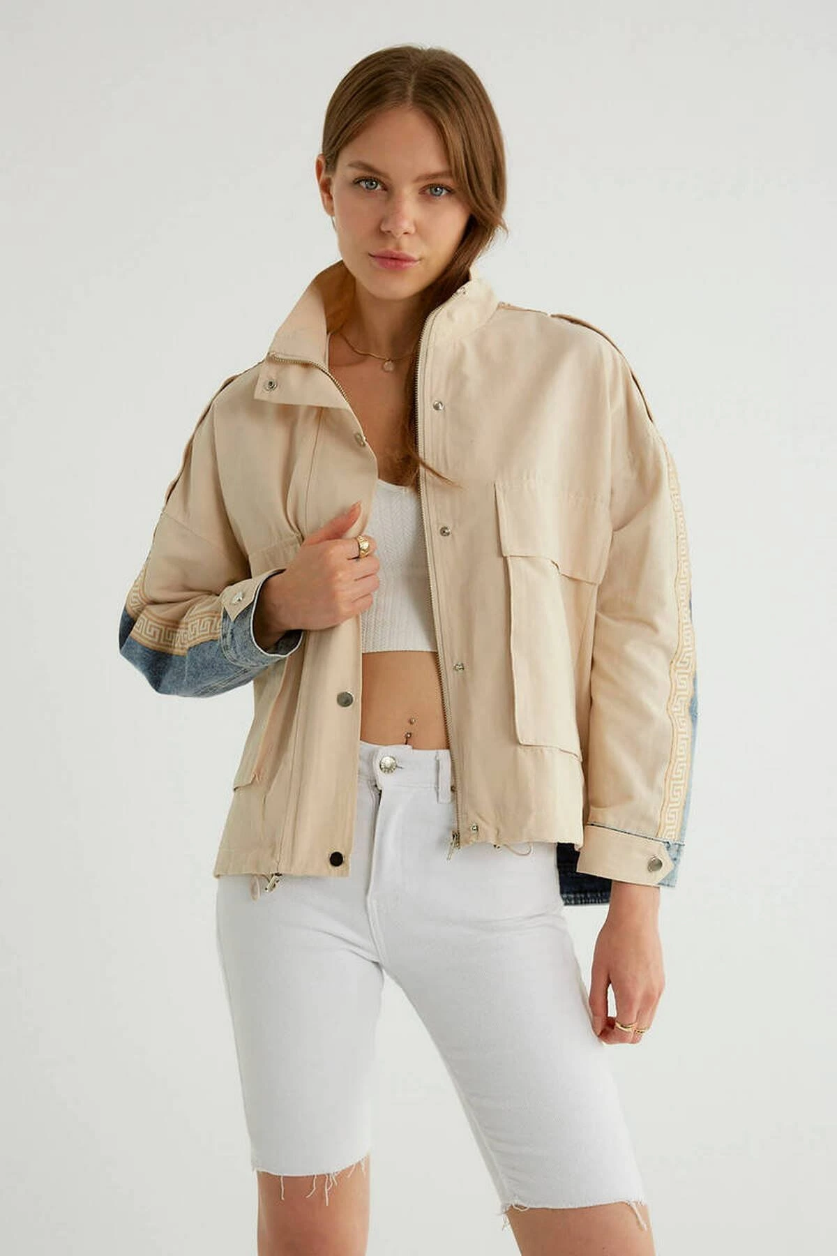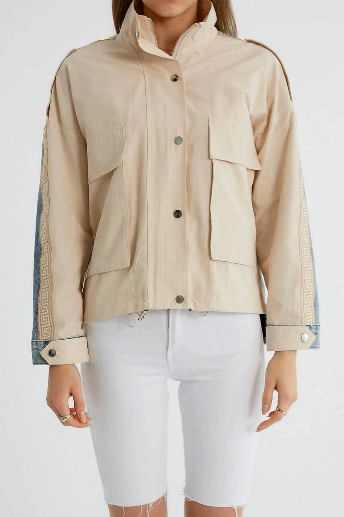 ARKA JEAN KOL BİYELİ KAPAK CEPLİ VİSKON TRENÇ – TAŞ