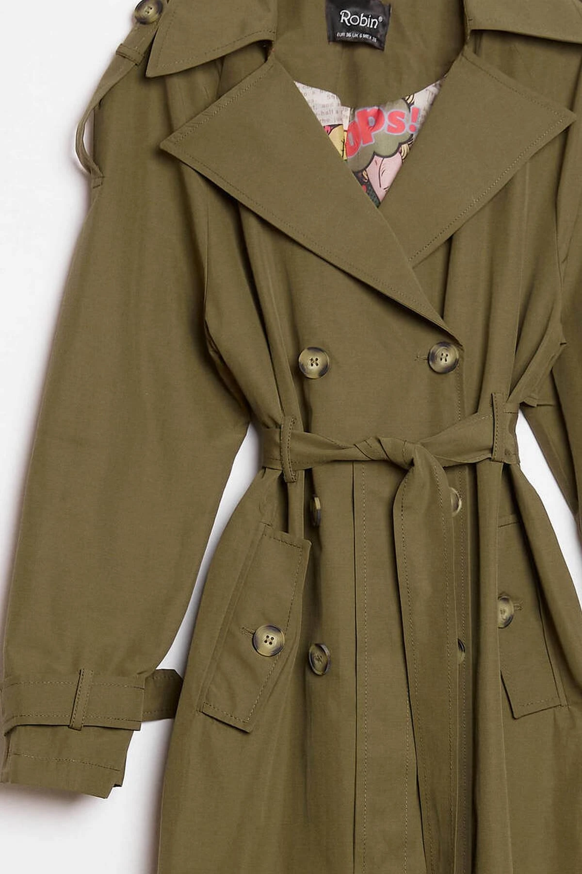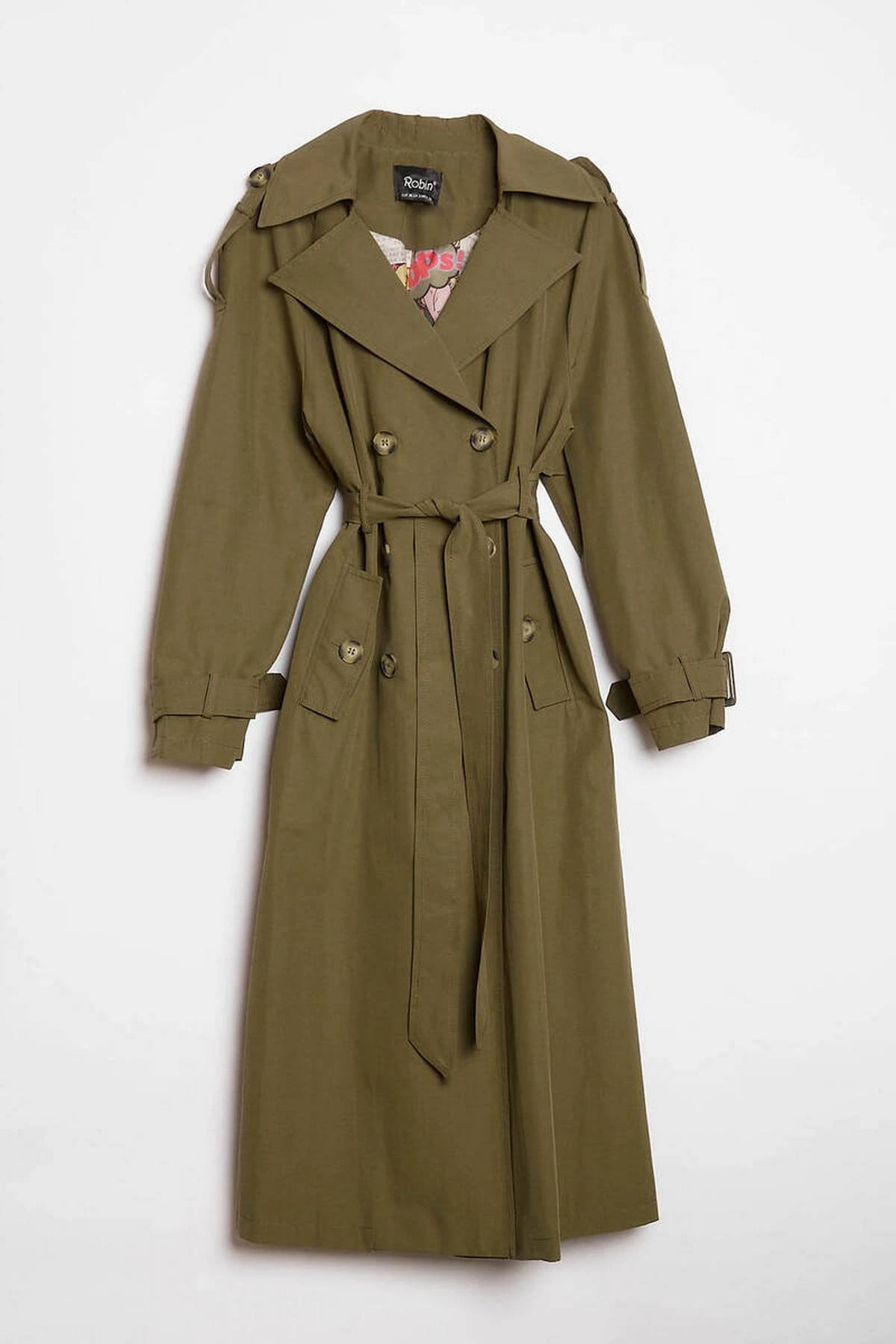 ASTARI DESENLİ KRUVAZE MAXİ BOY SIRT KAPAKLI VİSKON TRENÇ – HAKİ