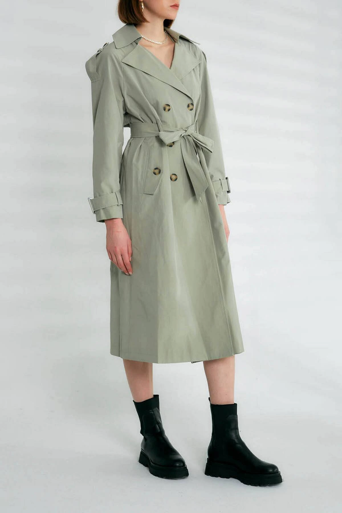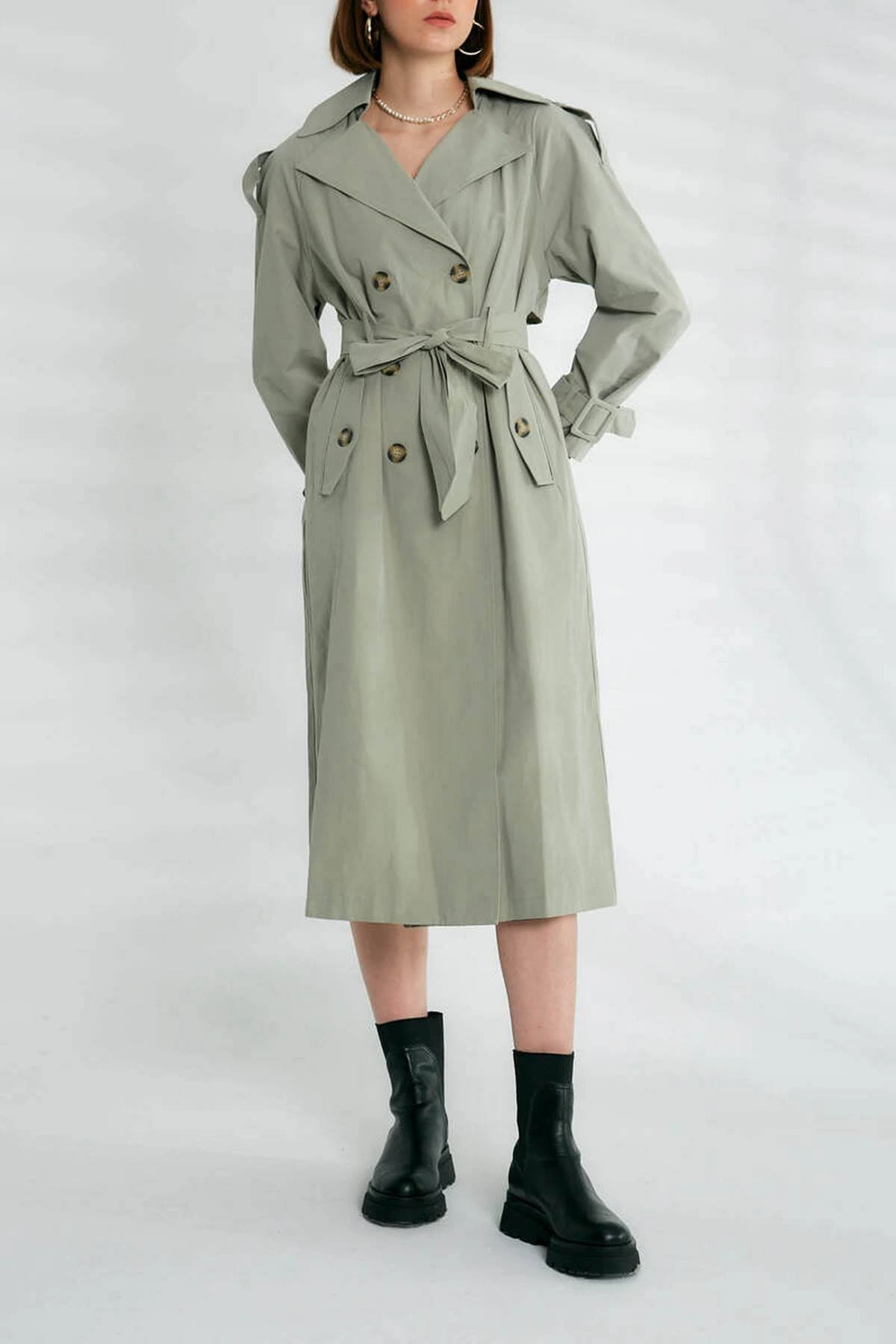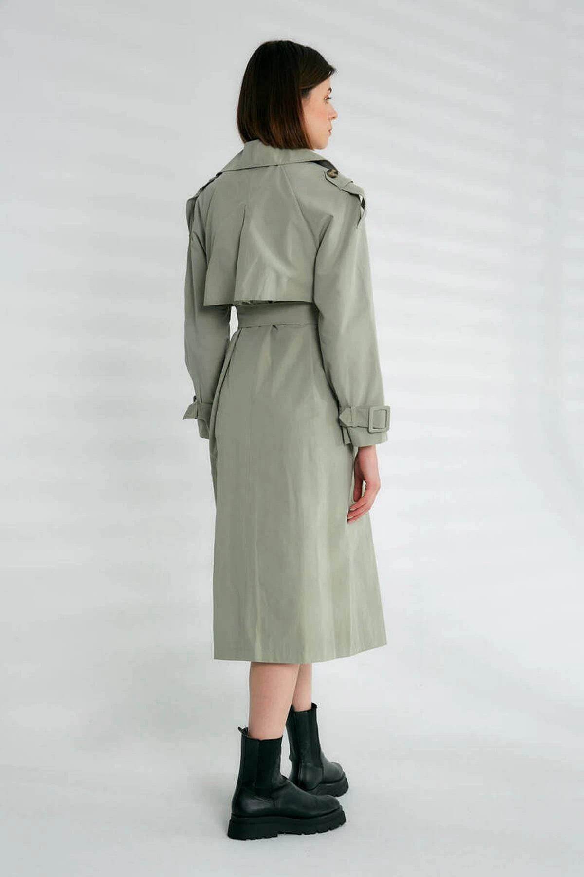 ASTARI DESENLİ KRUVAZE MAXİ BOY SIRT KAPAKLI VİSKON TRENÇ – MİNT YEŞİLİ
