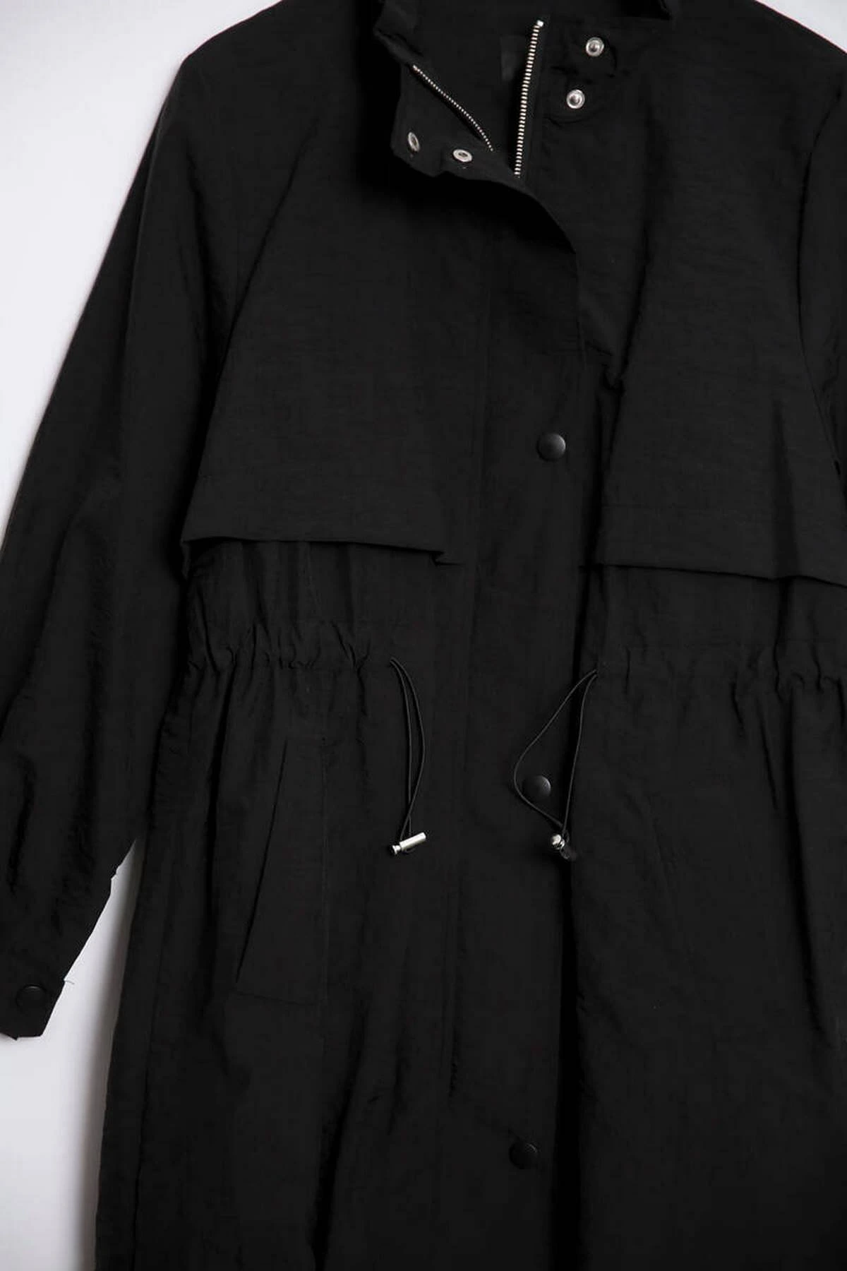 BEL BÜZGÜ SIRT KAPAKLI PARAŞÜT KUMAŞ TRENÇ – SİYAH