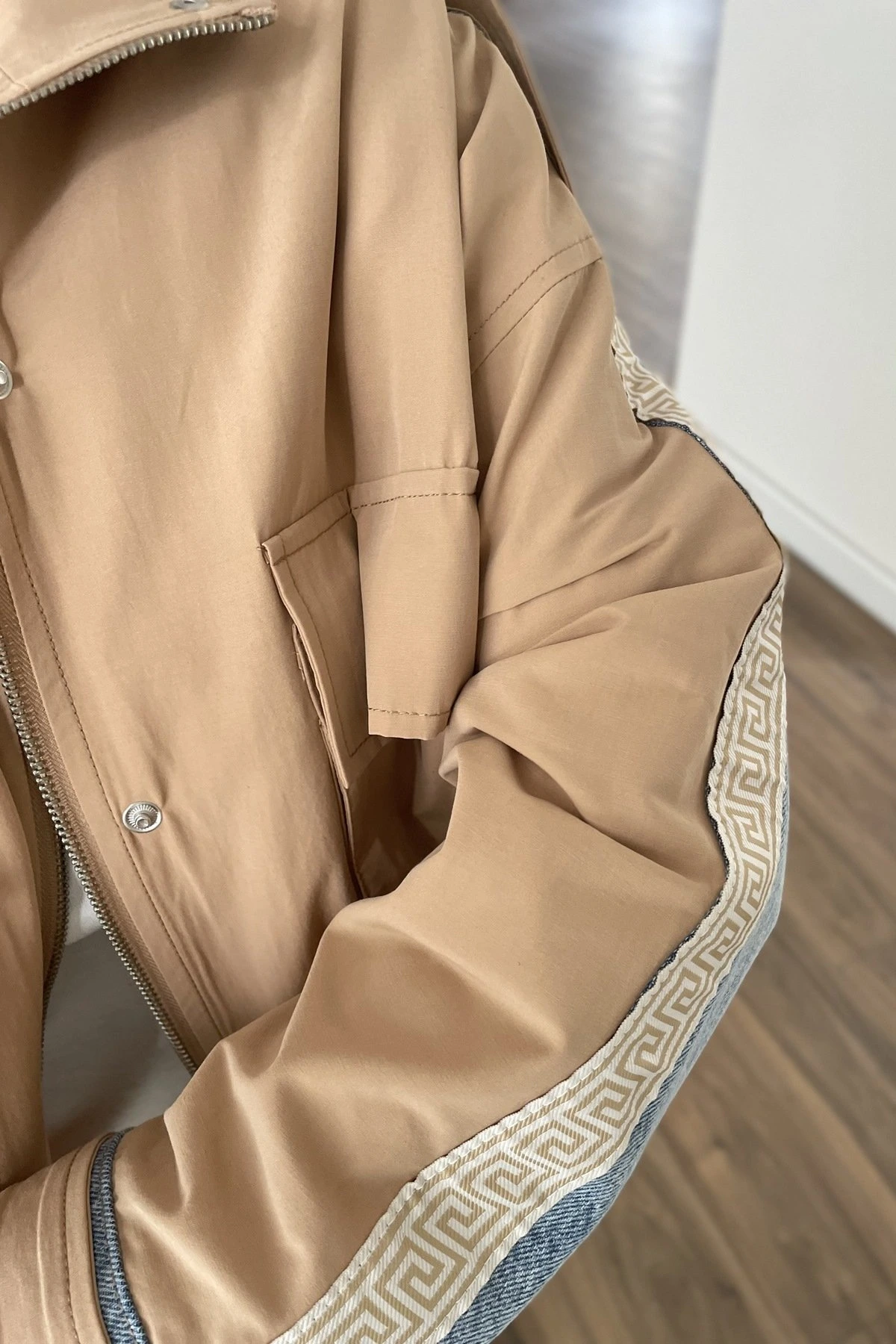 ARKA JEAN KOL BİYELİ KAPAK CEPLİ VİSKON TRENÇ – A.CAMEL