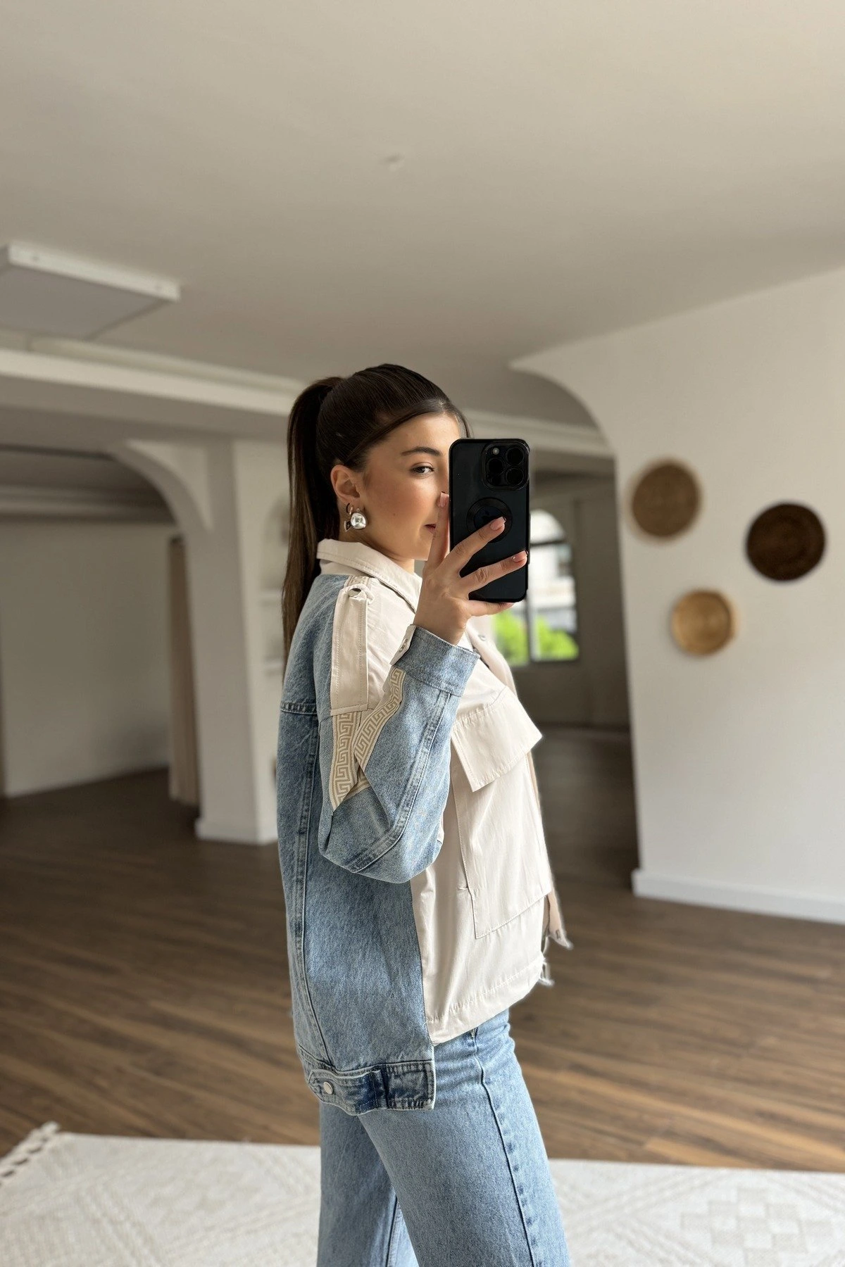 ARKA JEAN KOL BİYELİ KAPAK CEPLİ VİSKON TRENÇ – TAŞ