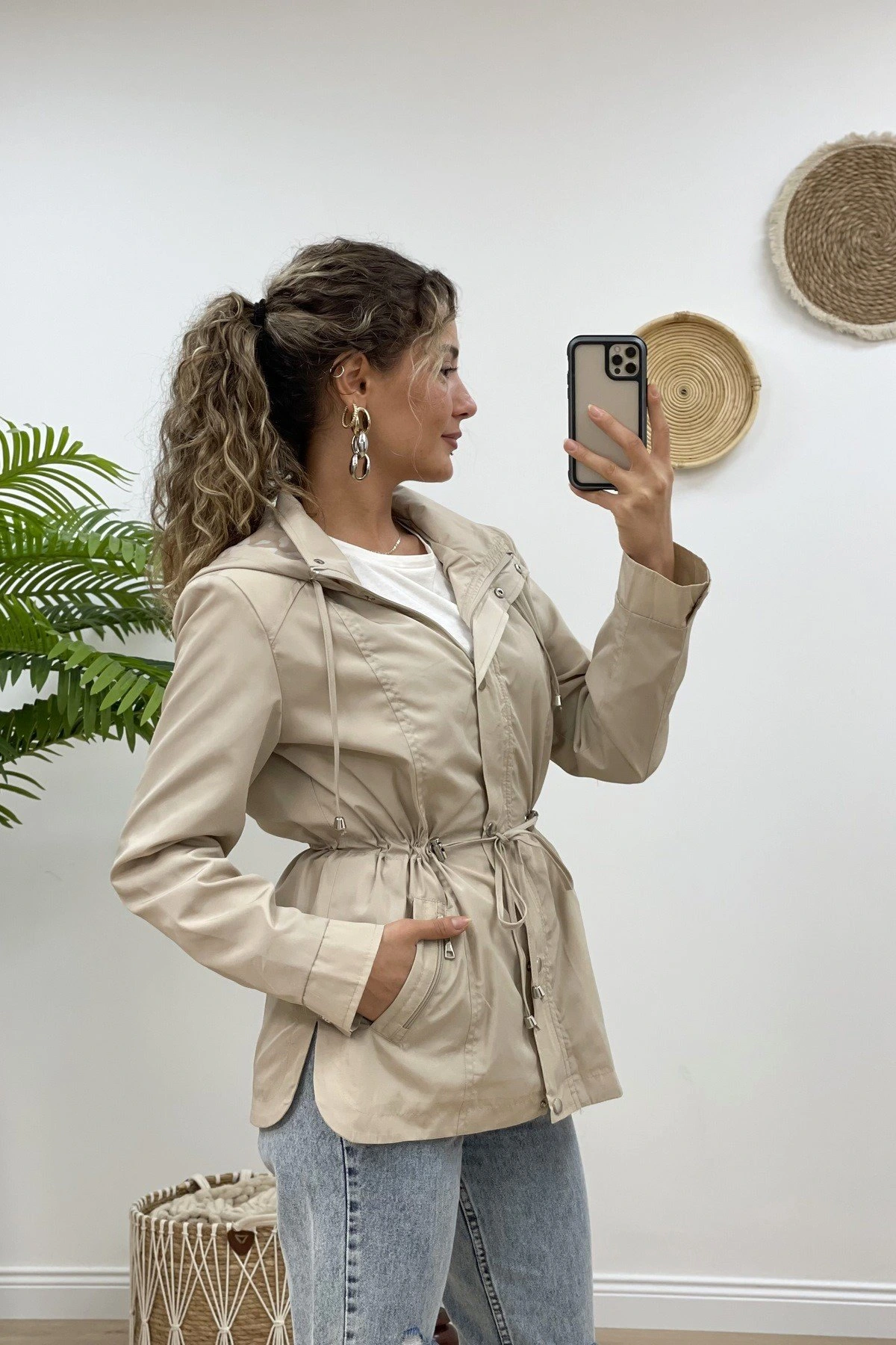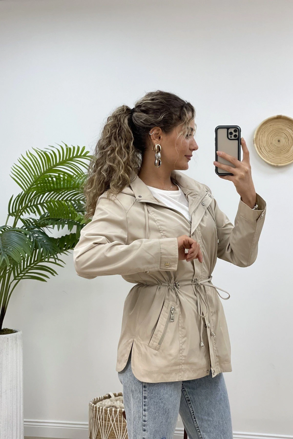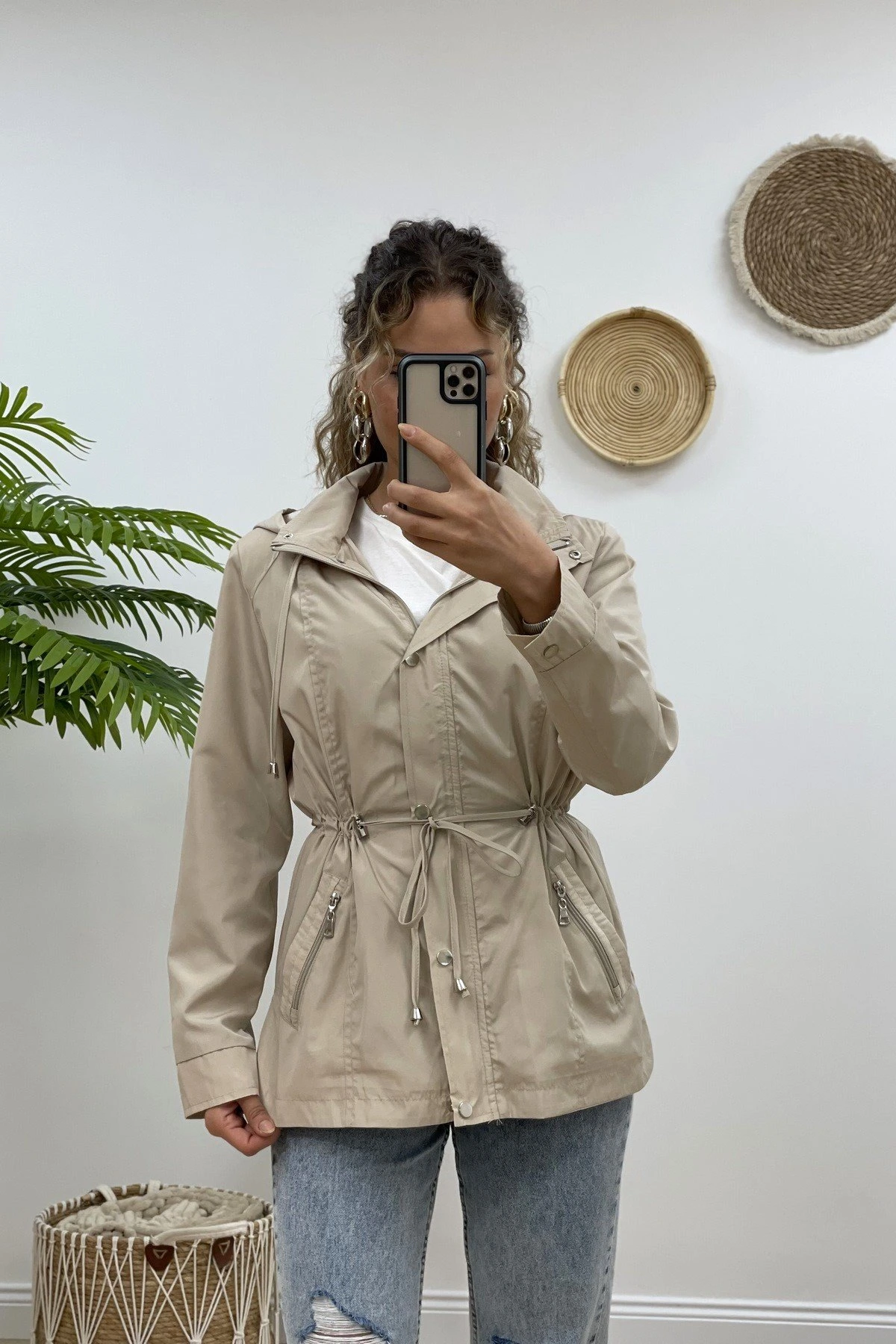 ASTARI DESENLİ BEL BÜZGÜ YAĞMURLUK – TAŞ
