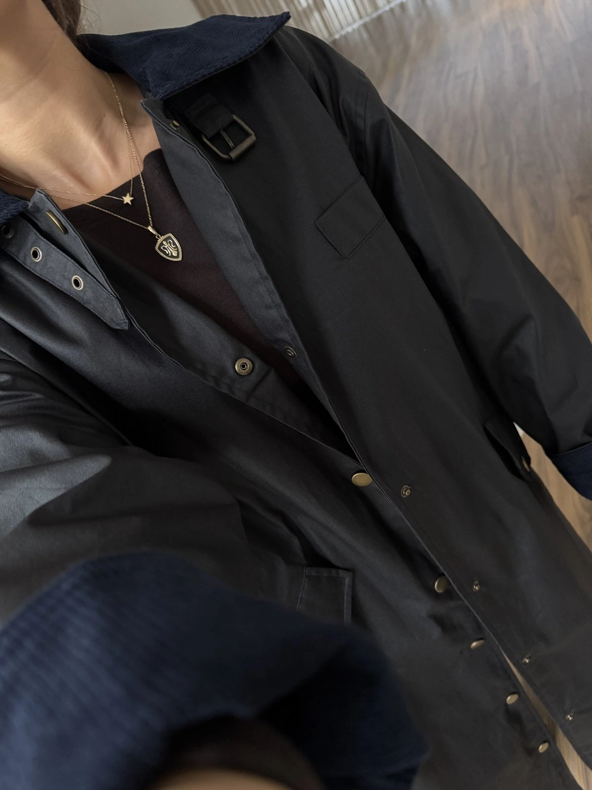 BARBOUR KADİFE YAKA ASTARLI UZUN KAPLAMA UZUN TRENÇ – LACİVERT
