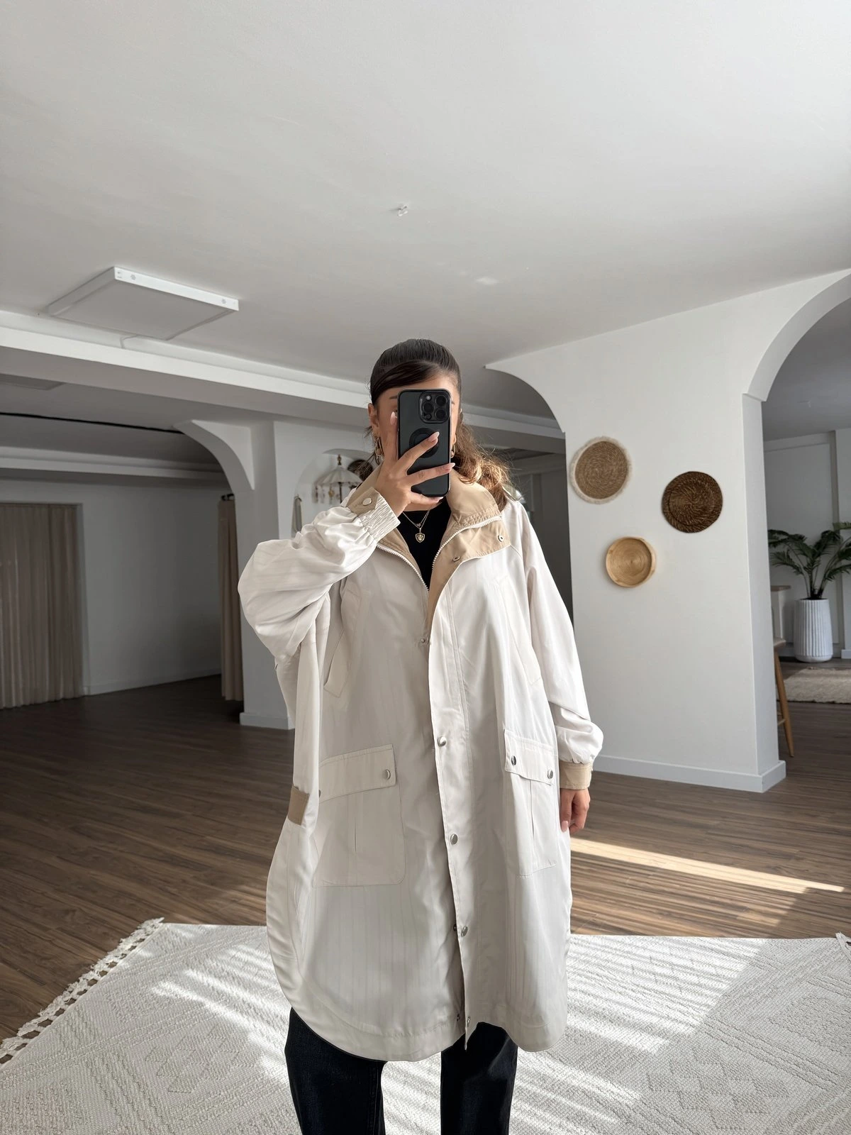 KAPÜŞONLU ETEĞİ OVAL ÇİZGİLİ ASTAR SALAŞ İNCE YAĞMURLUK – TAŞ