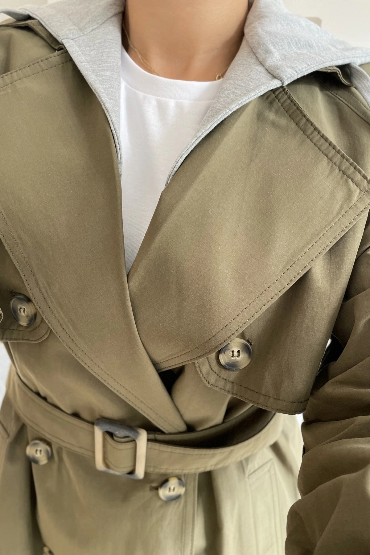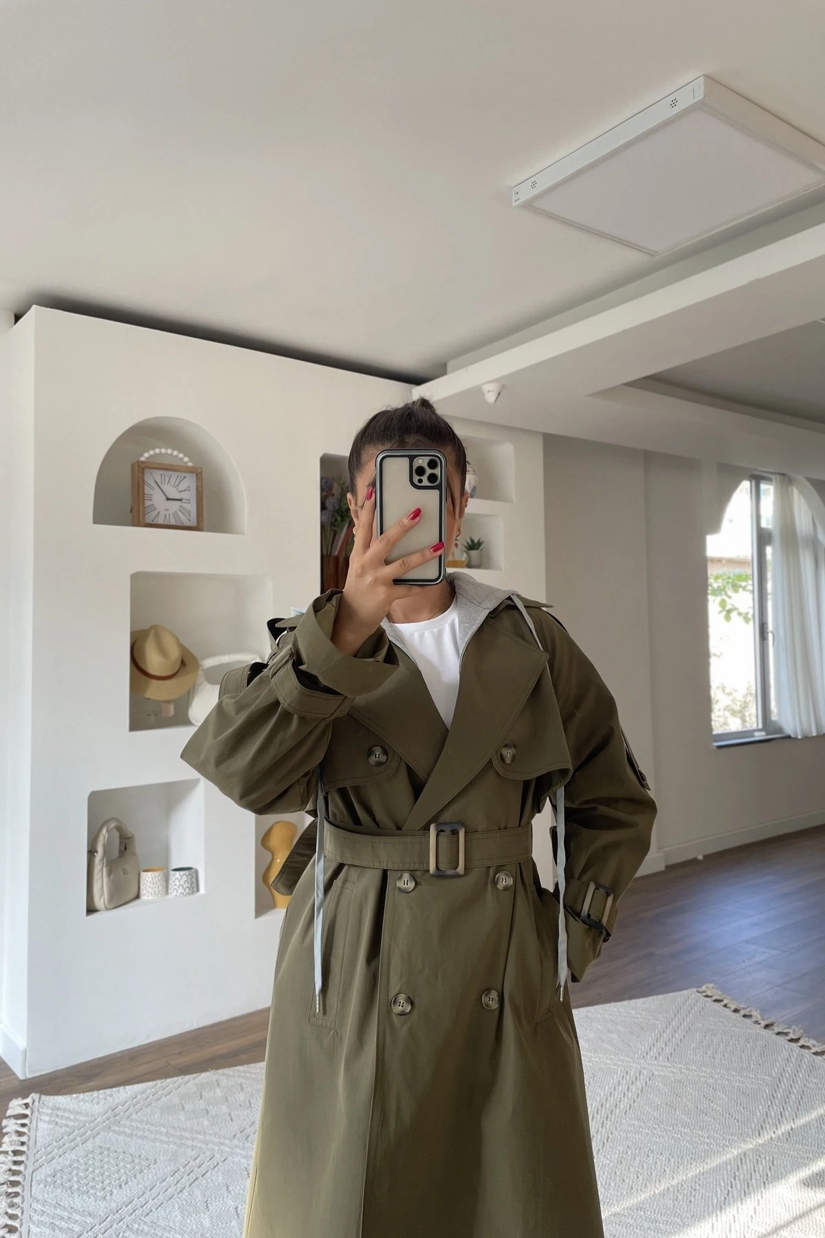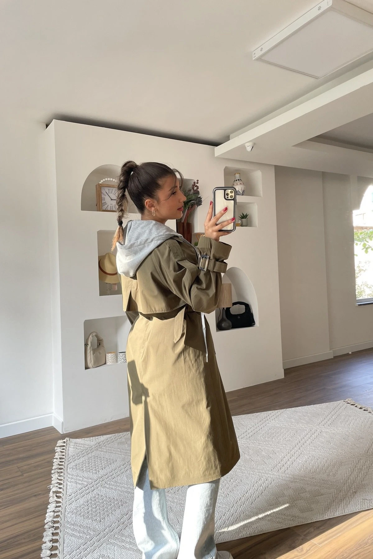 KAPÜŞONU ÇIKARILABİLİR SIRT KAPAKLI VİSKON TRENÇ – HAKİ