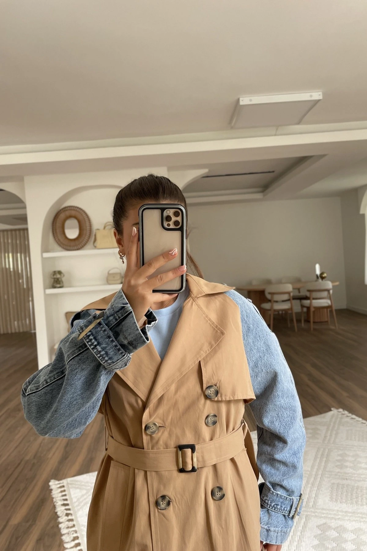 KOL JEAN DETAY SIRT KAPAK VİSKON TRENÇ – A.CAMEL