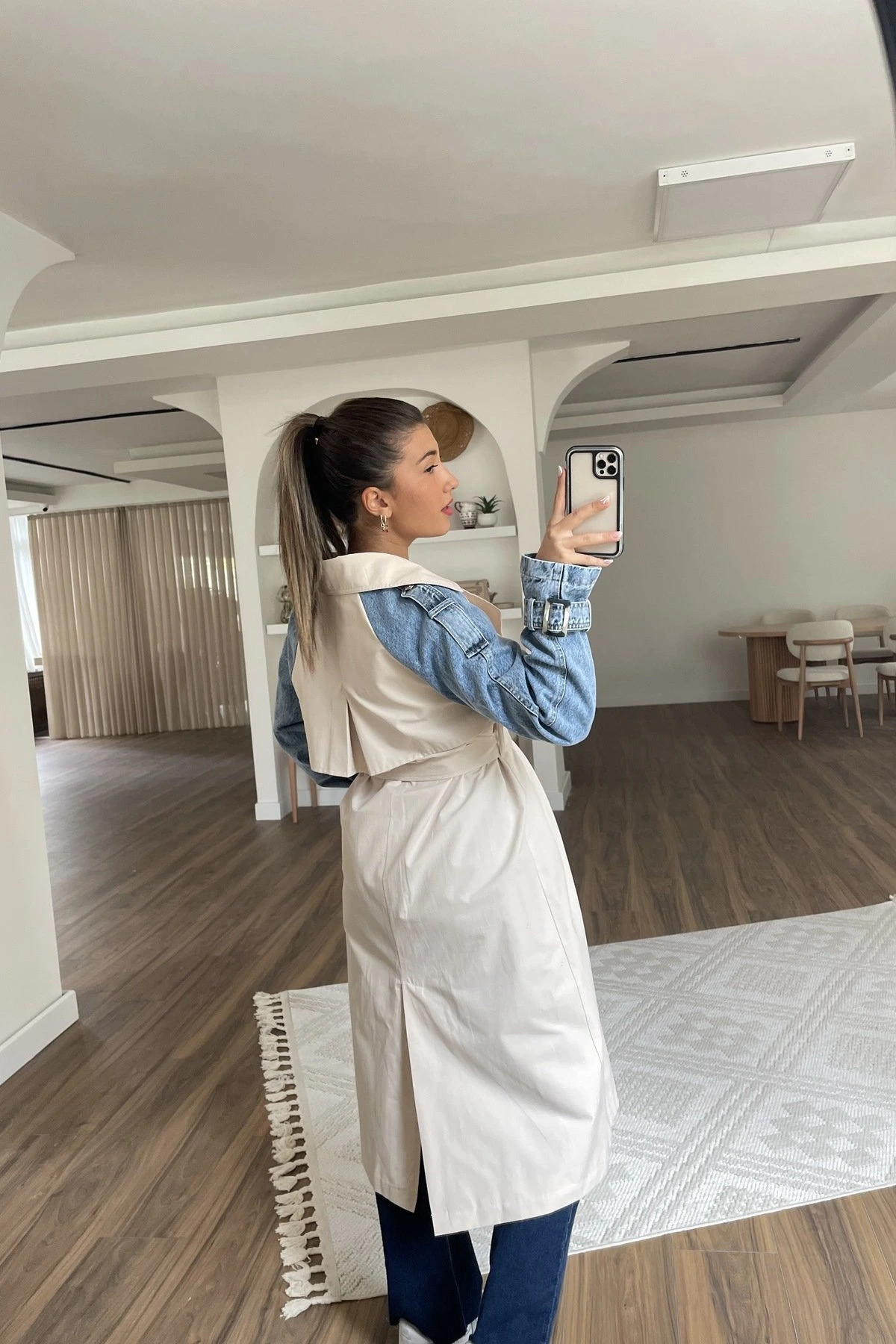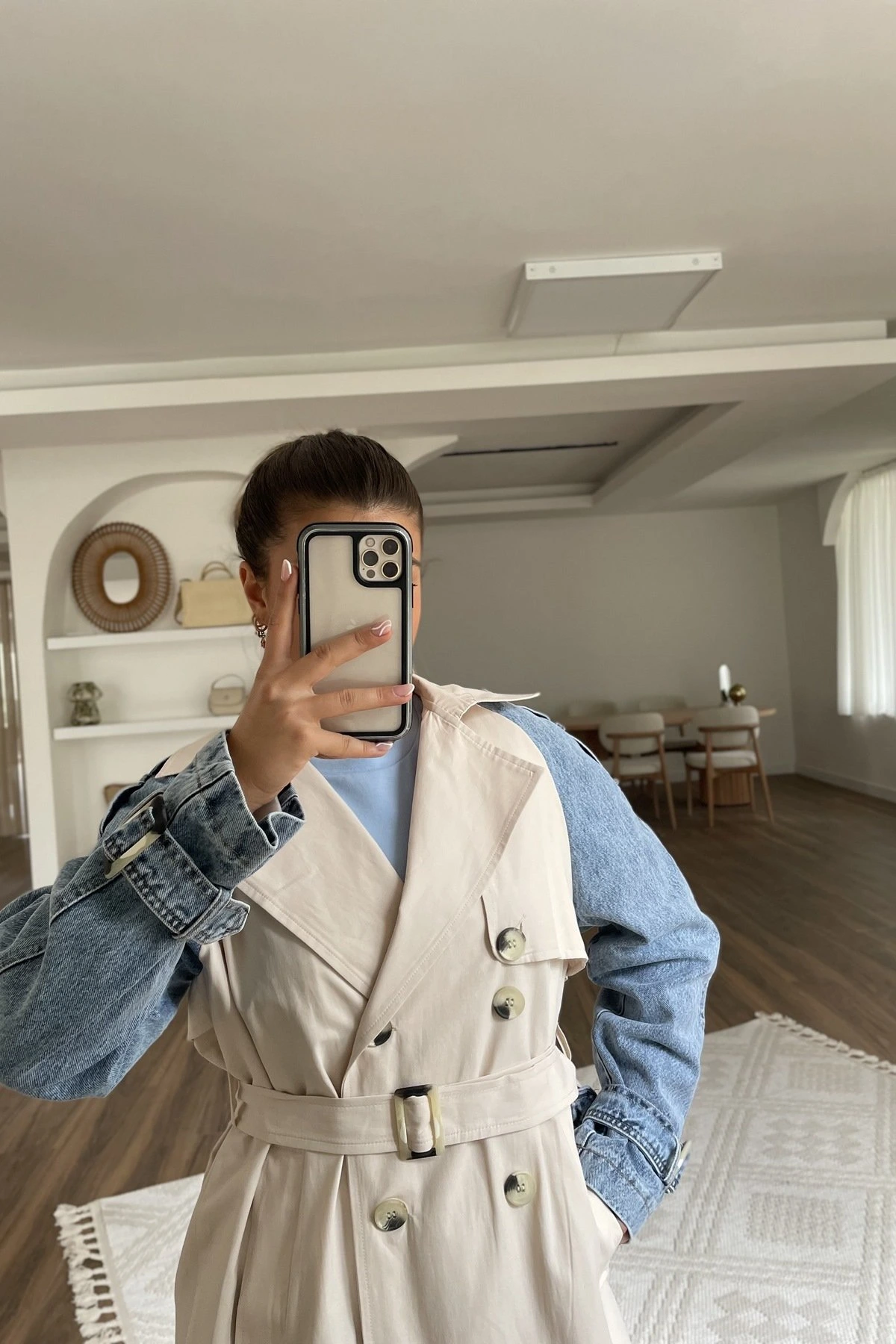KOL JEAN DETAY SIRT KAPAK VİSKON TRENÇ – TAŞ