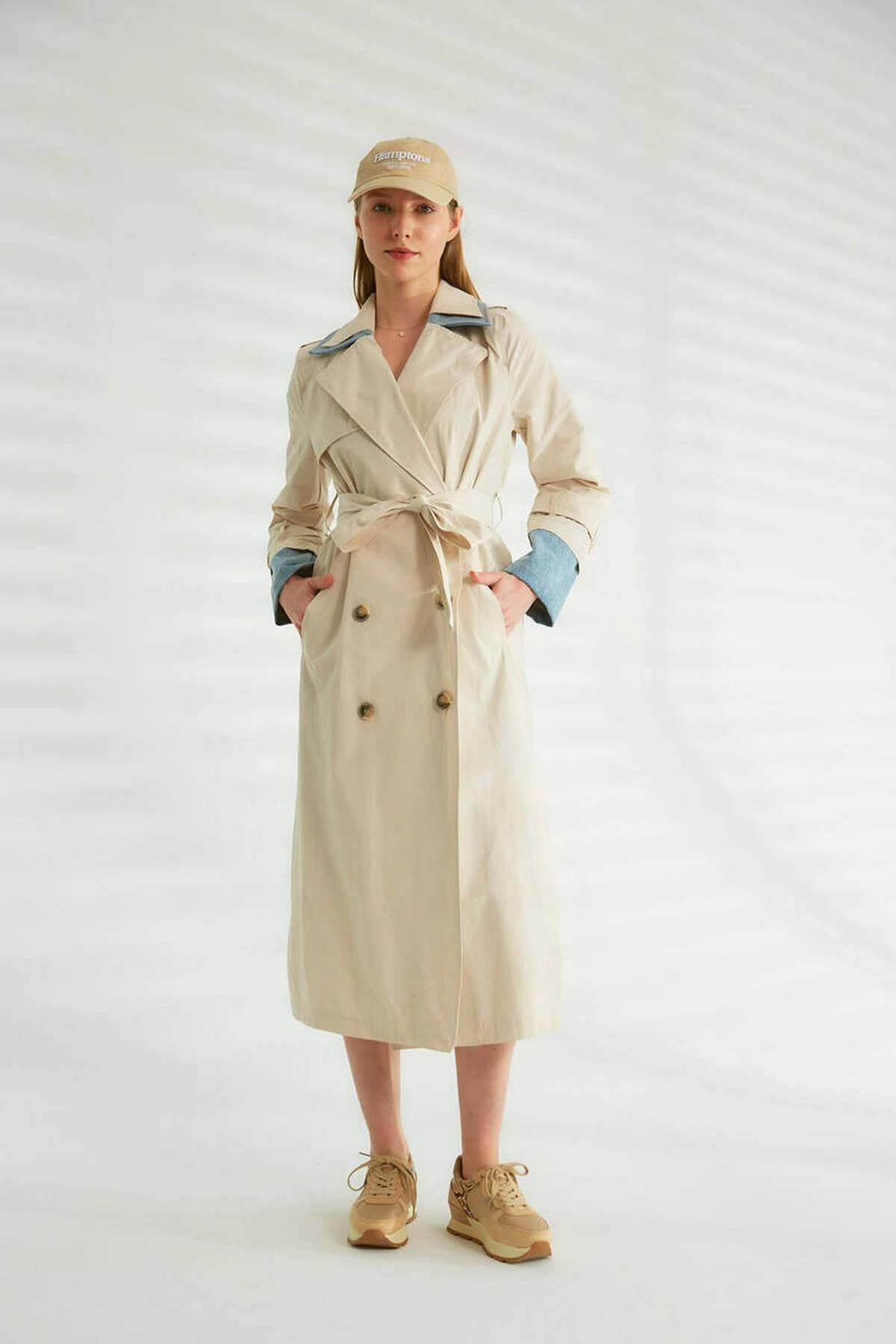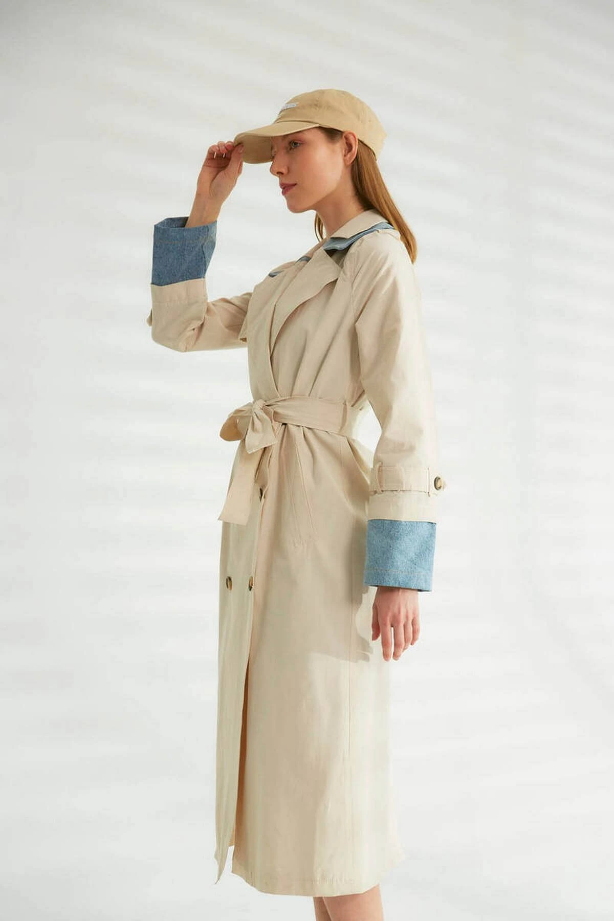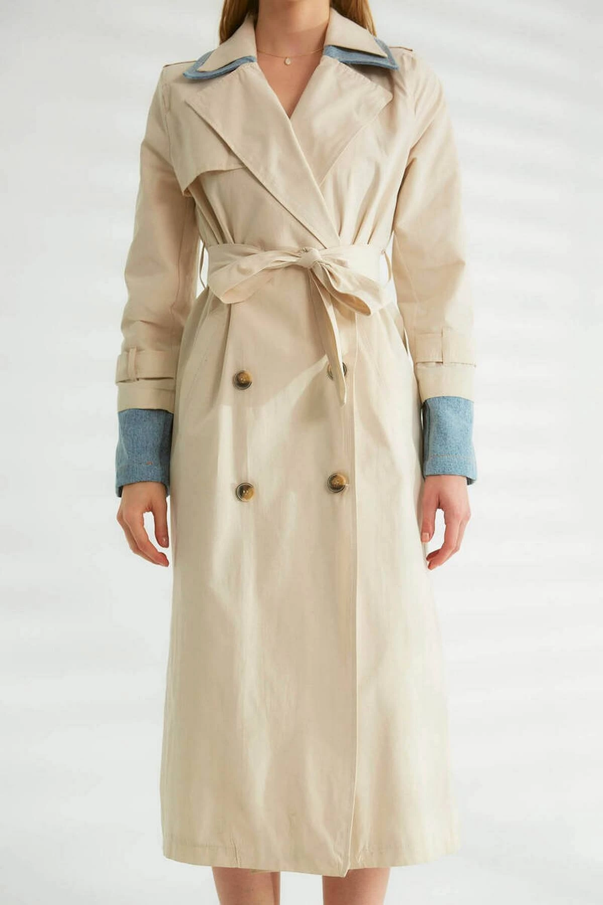 KOL VE YAKA JEAN DETAY MAXİ BOY TRENÇKOT – TAŞ