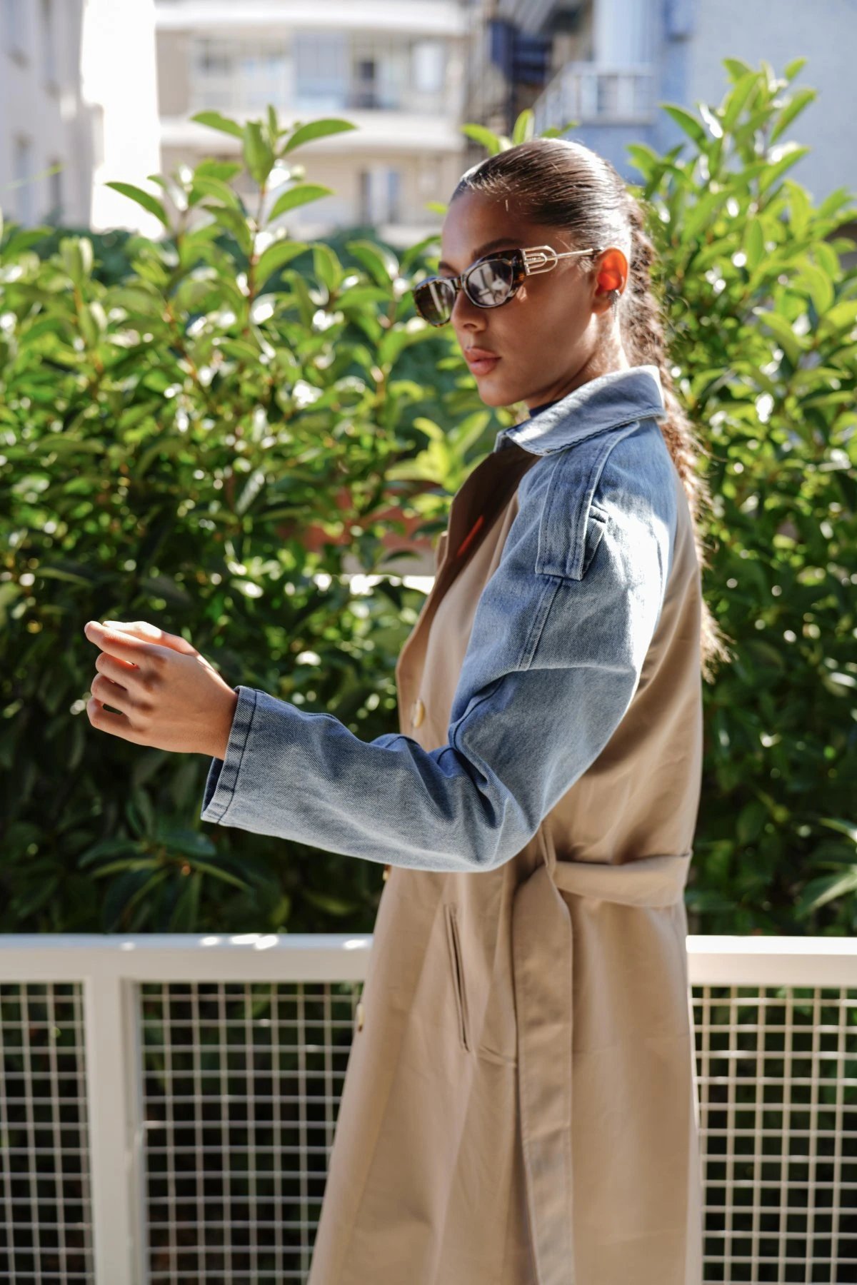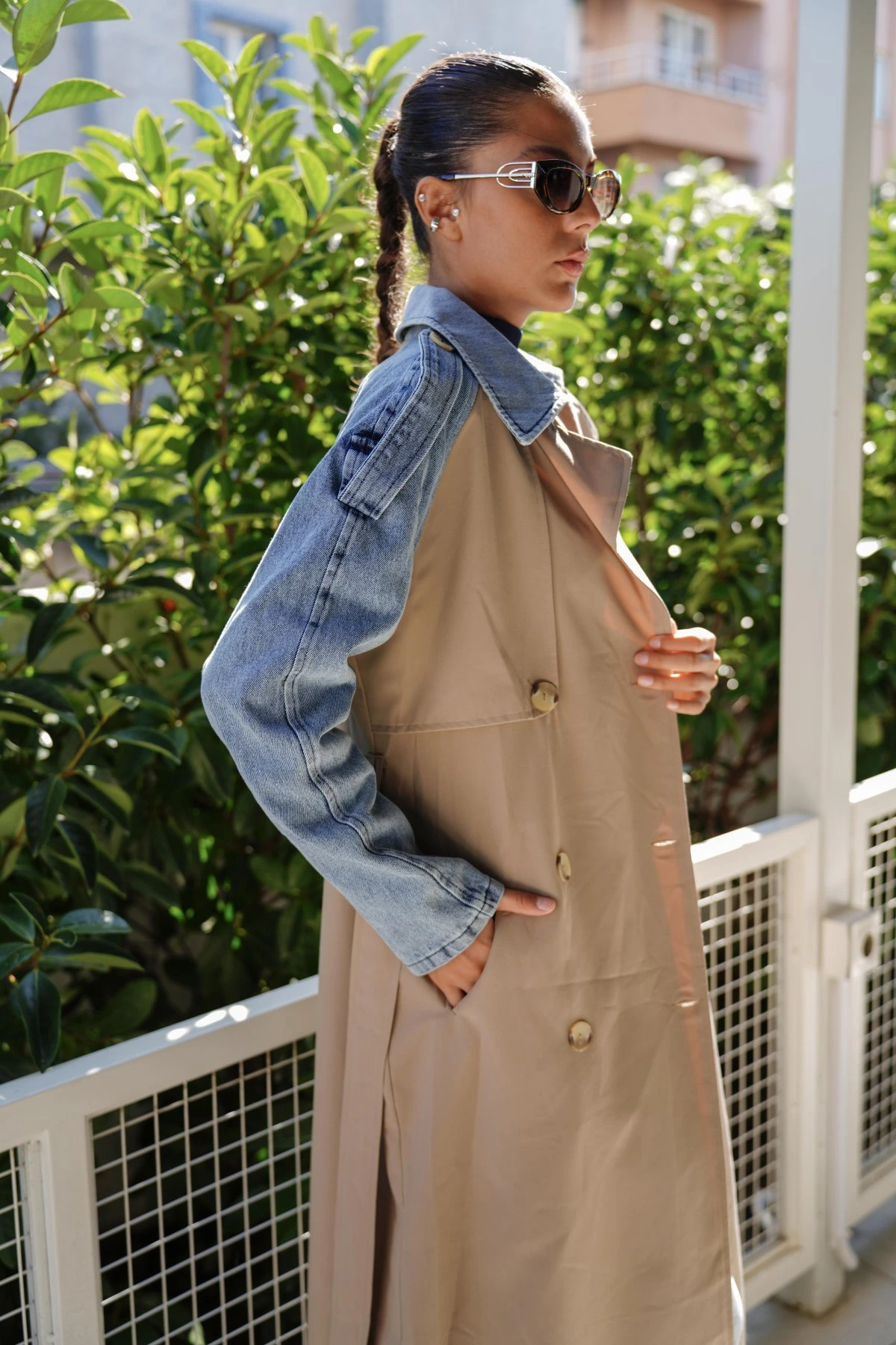 OMUZ VE KOL JEAN DETAY KUŞAKLI MİDİ BOY TRENÇ – BEJ