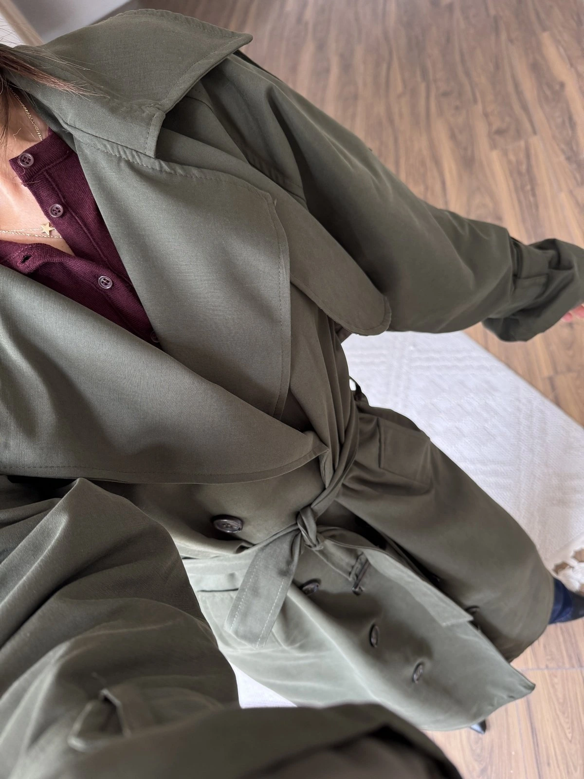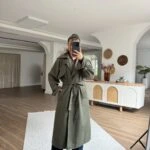 SIRT KAPAK ASTARLI BRİTLİ UZUN PAMUK TRENÇ – HAKİ