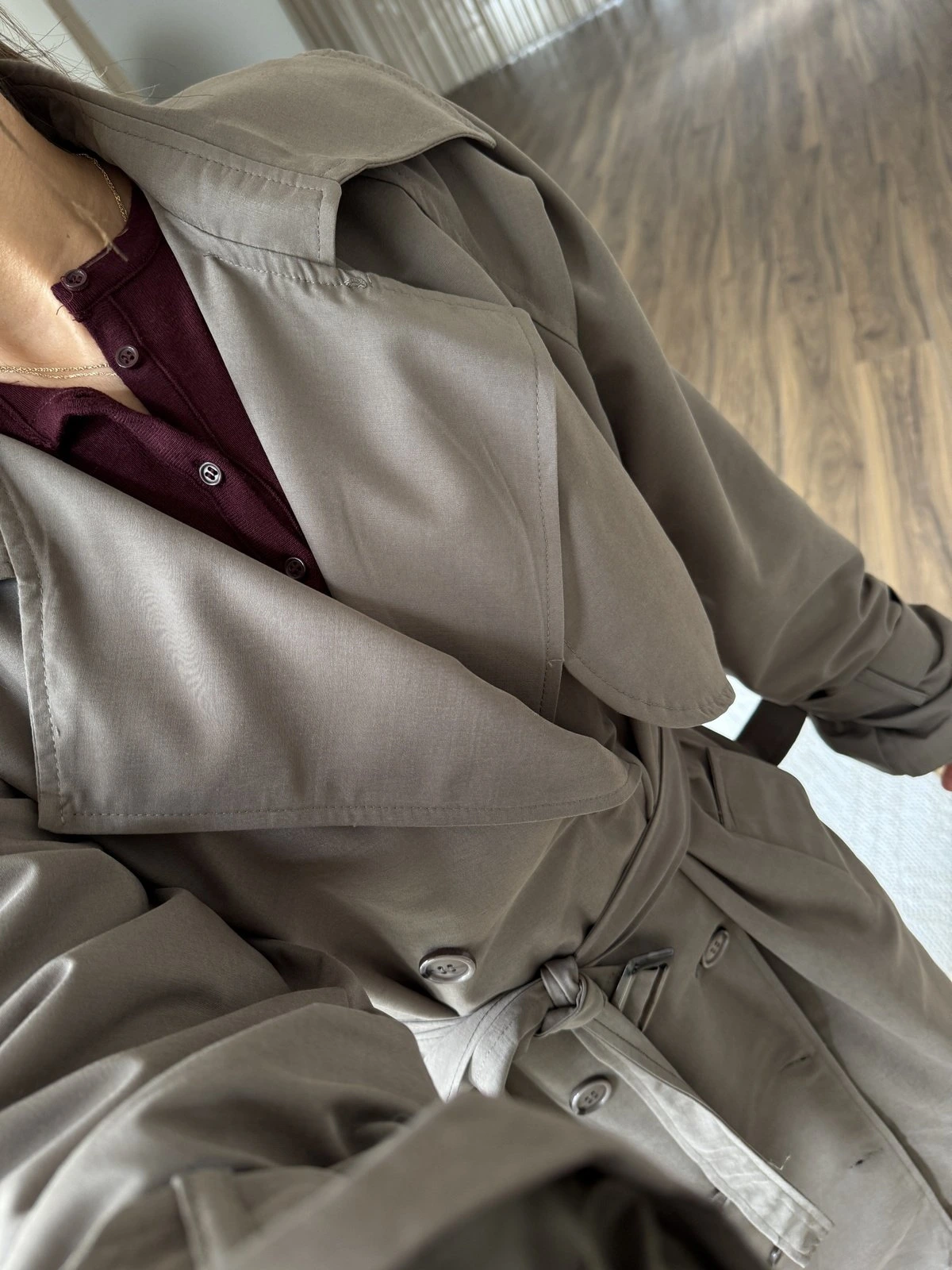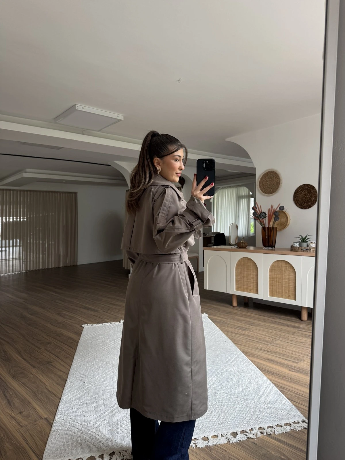SIRT KAPAK ASTARLI BRİTLİ UZUN PAMUK TRENÇ – VİZON