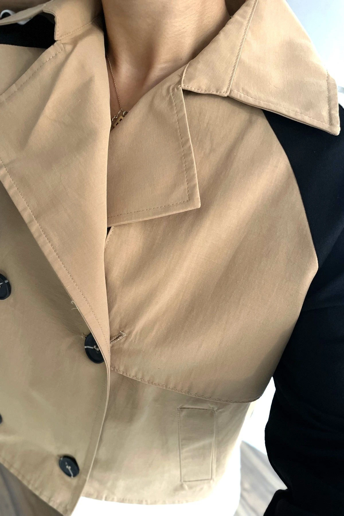 SIRT KAPAKLI KOL ÇİZGİLİ PAMUK KISA TRENÇ – A.CAMEL