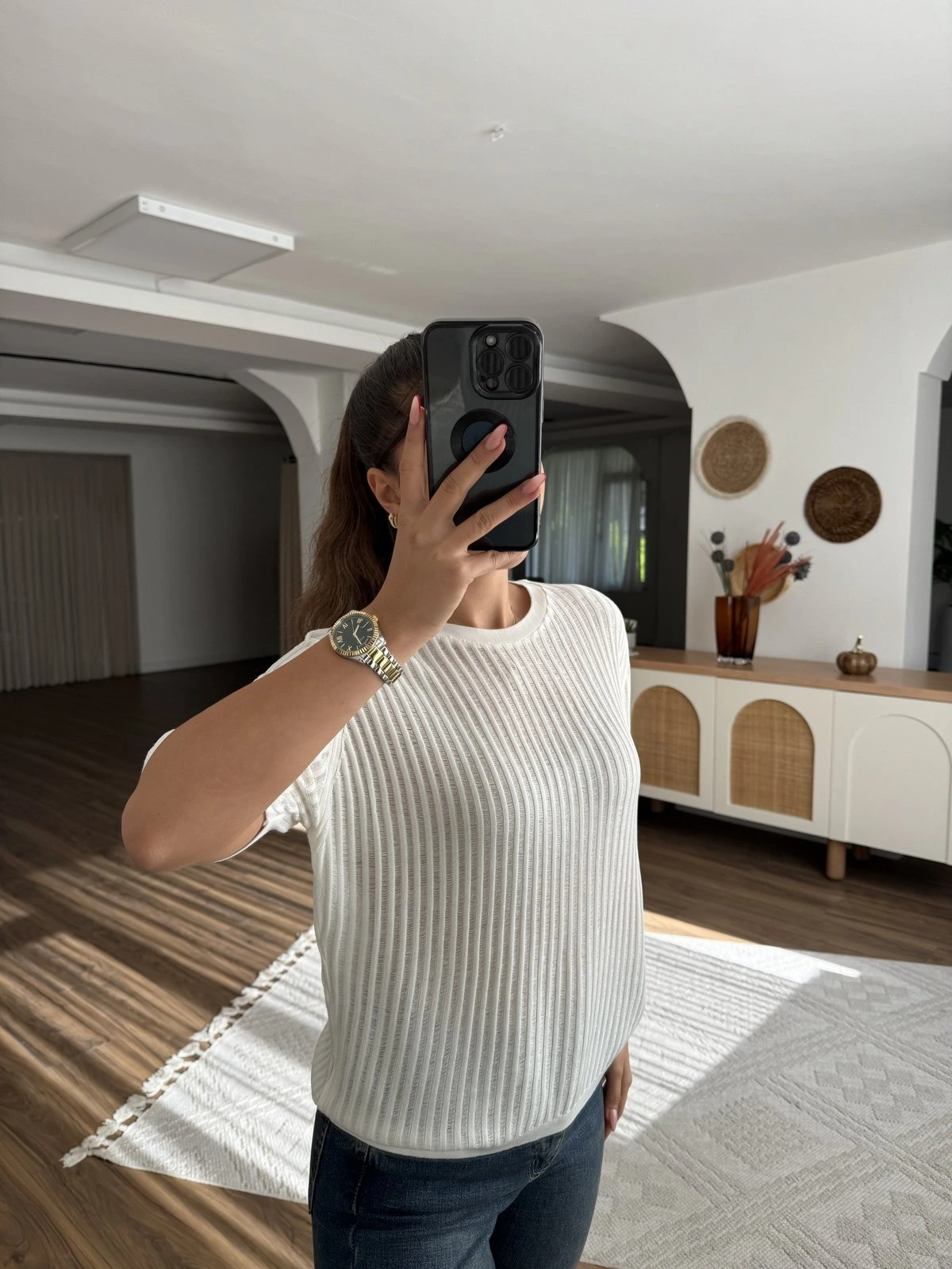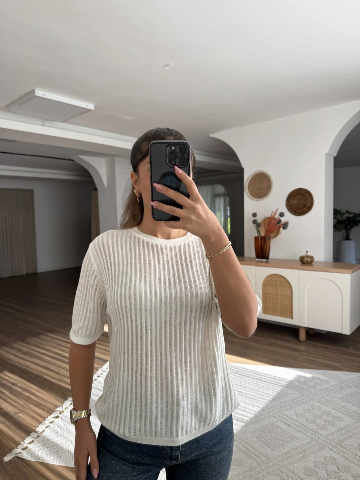 AJURLU KISA KOL VİSKON TRİKO – EKRU