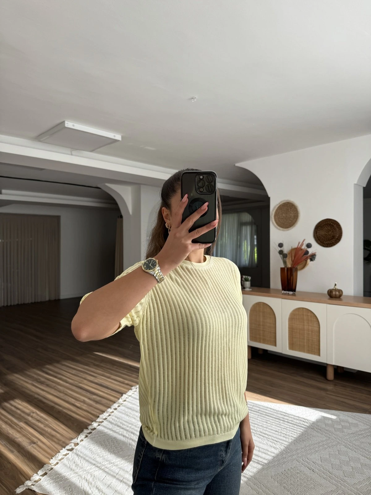 AJURLU KISA KOL VİSKON TRİKO – SARI