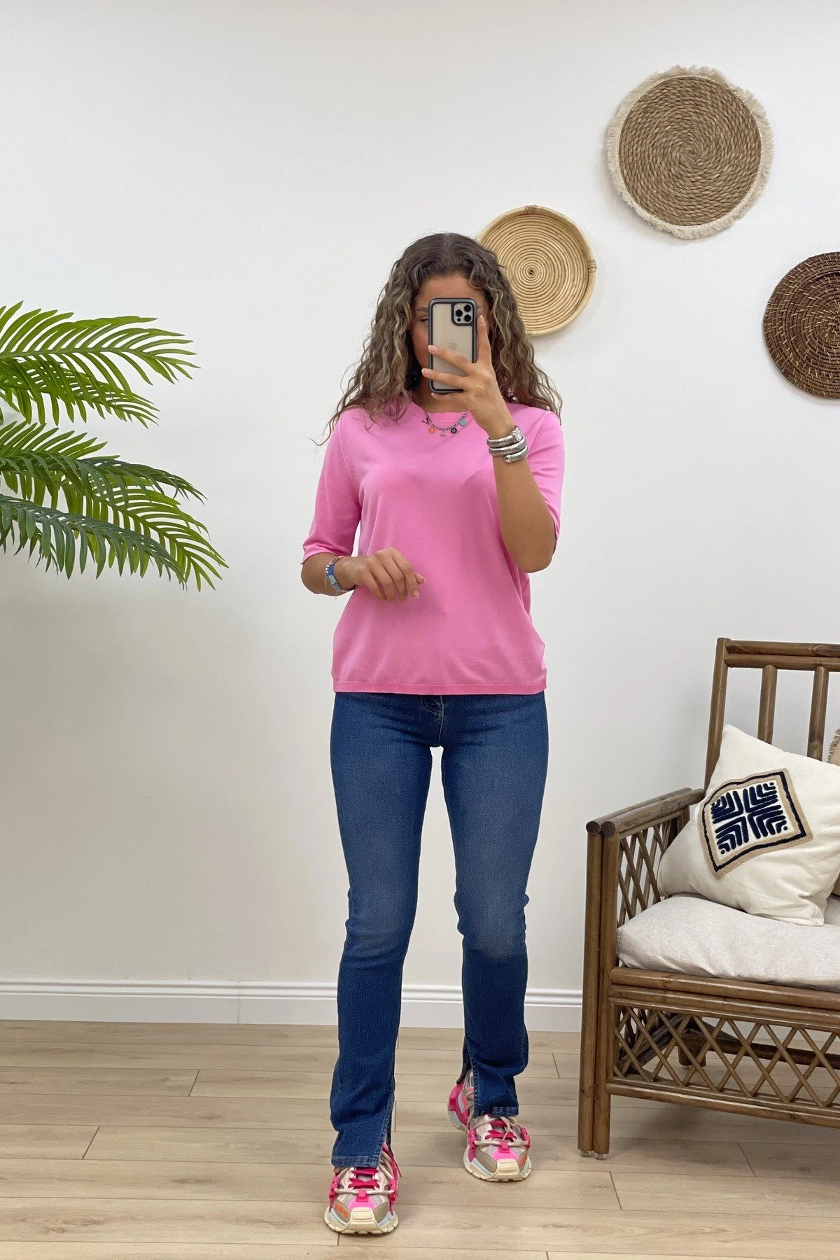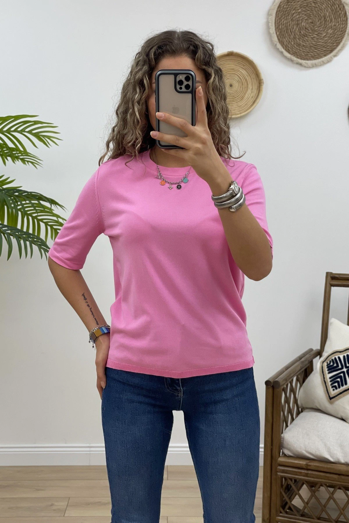 ARKA DAMLA KISA KOL TRİKO – PEMBE