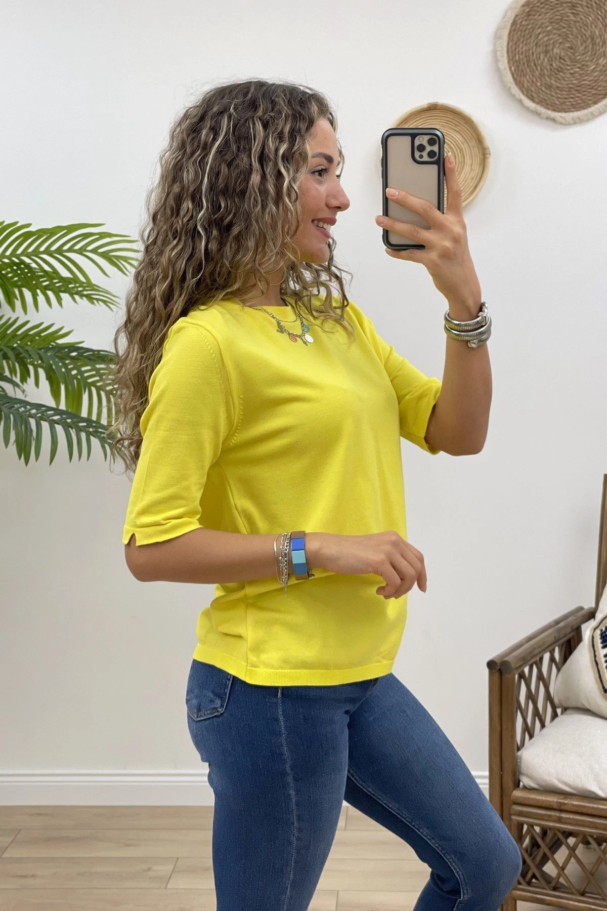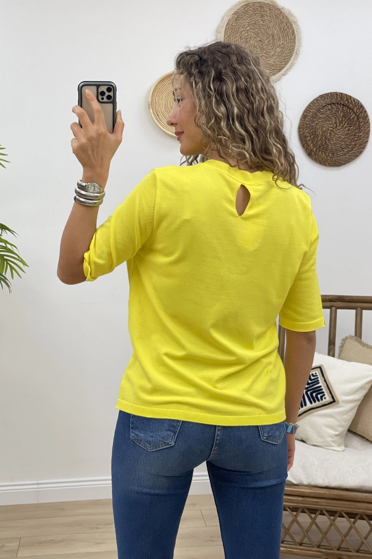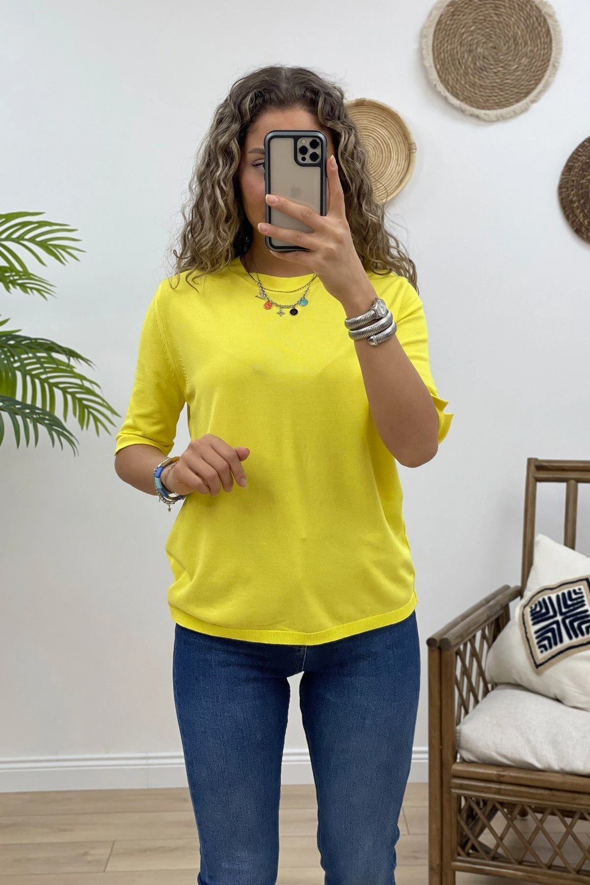 ARKA DAMLA KISA KOL TRİKO – SARI