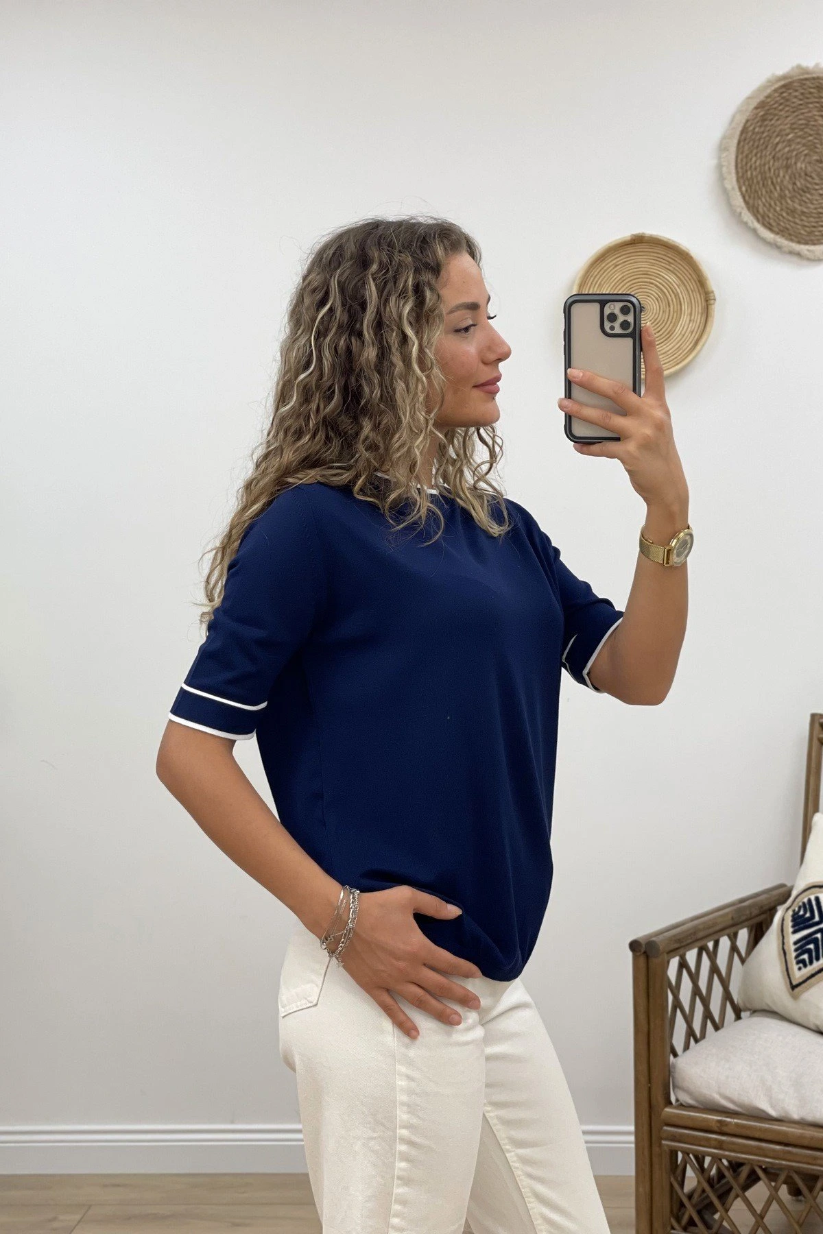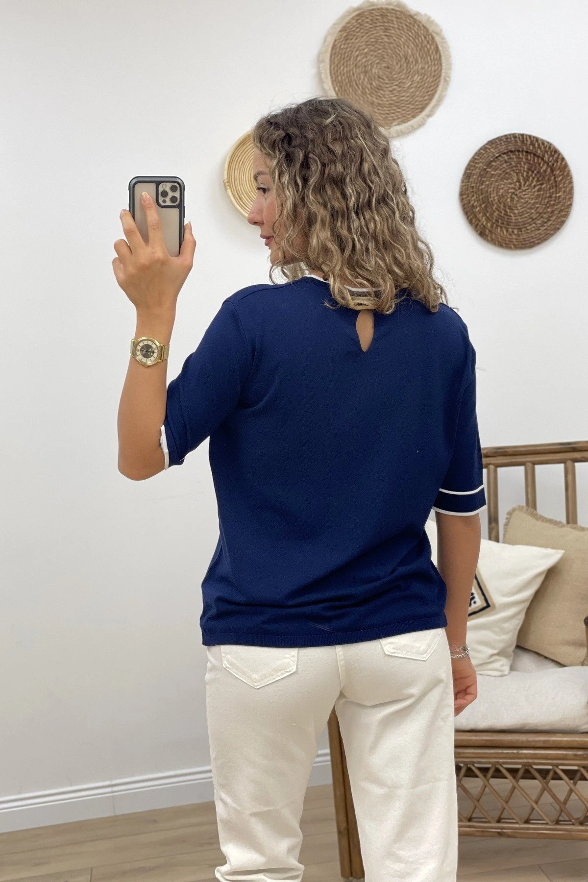 ARKA DAMLA KOL VE YAKA ŞERİT VİSKON TRİKO – LACİVERT