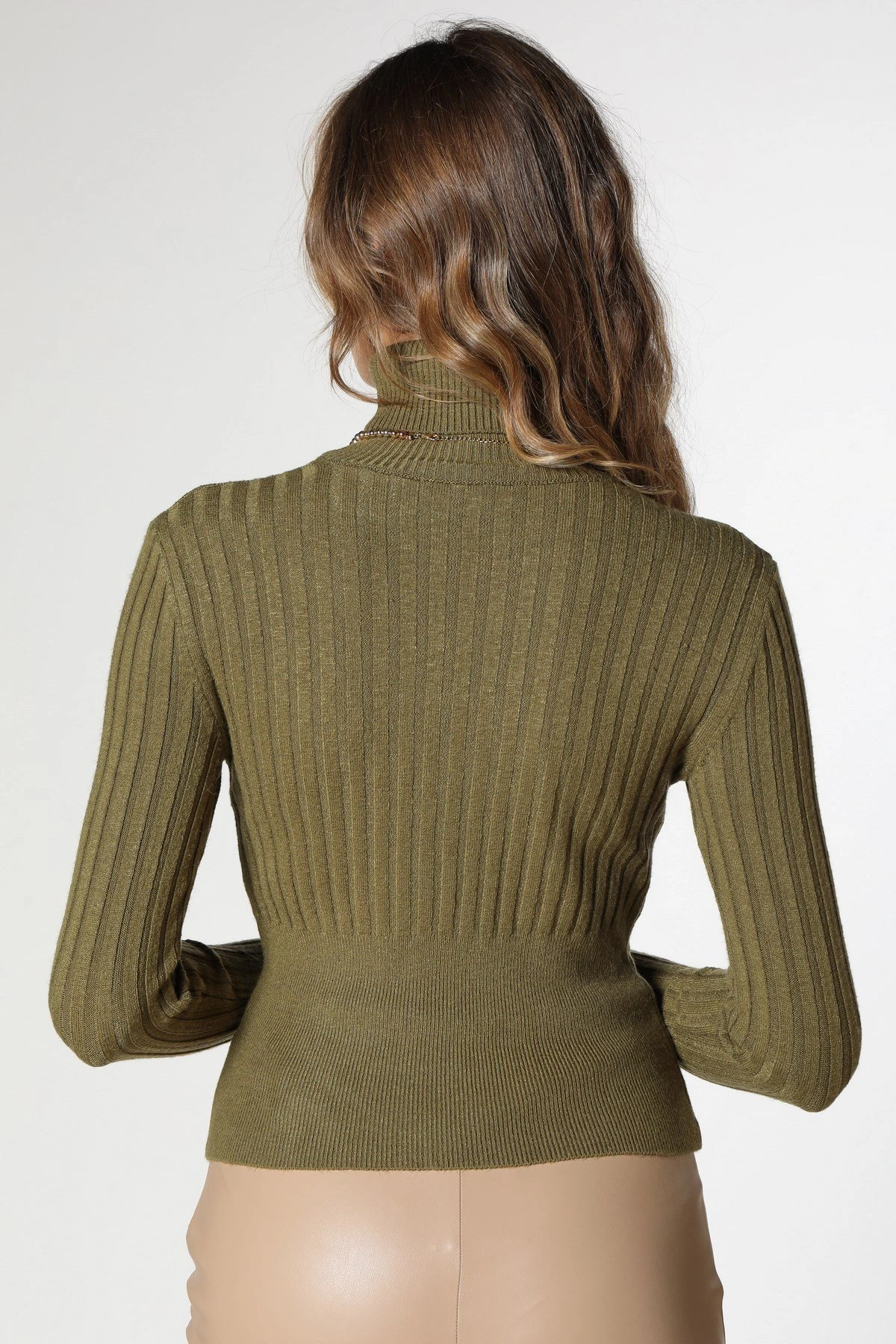 FİTİLLİ V YAKA TRİKO - EKRU