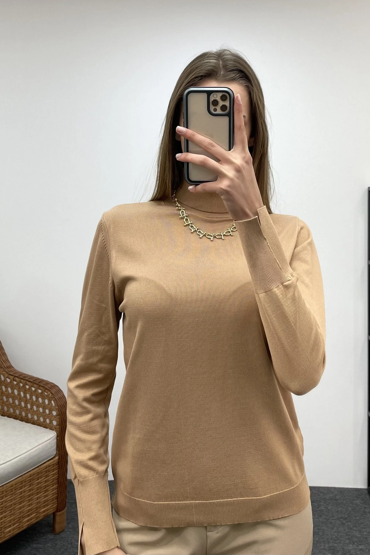 BALIKÇI KOL YIRTMAÇLI TRİKO – CAMEL