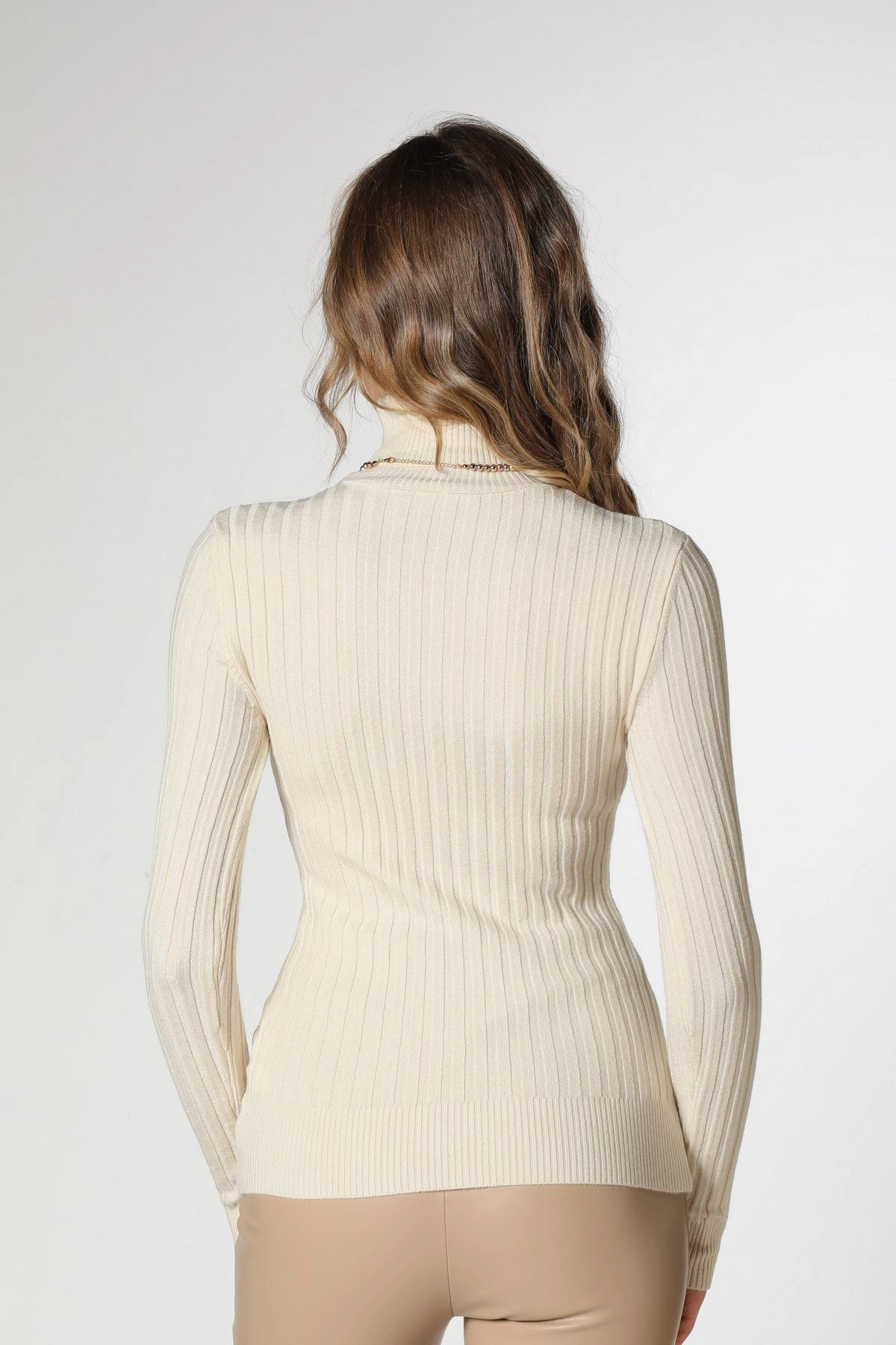 BALIKÇI YAKA FİTİLLİ TRİKO – KREM