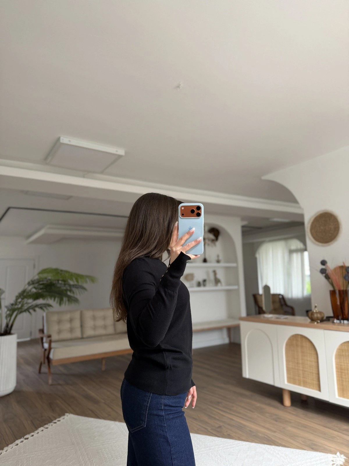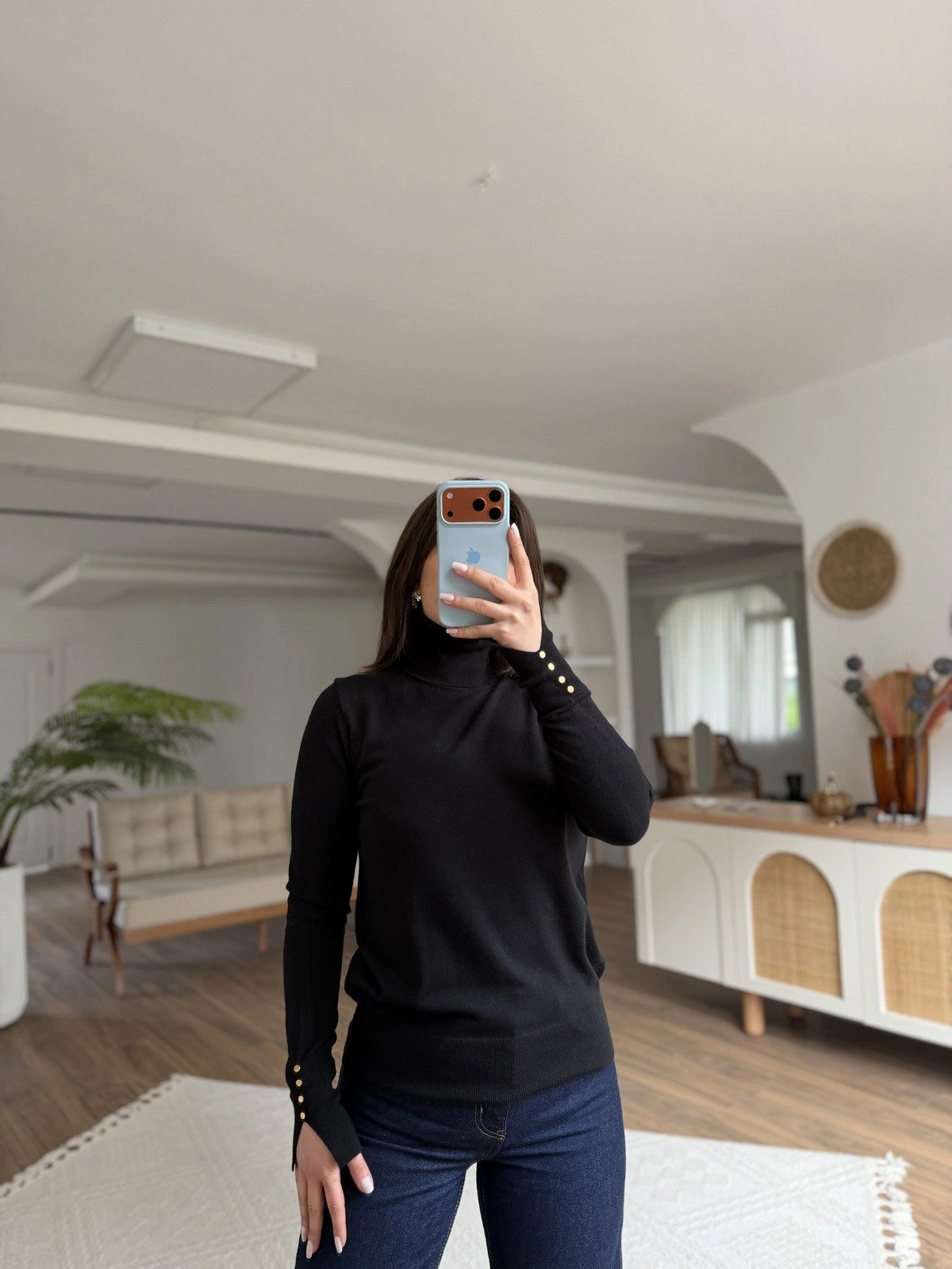 BALIKÇI YAKA KOL DROP VİSKON TRİKO – SİYAH