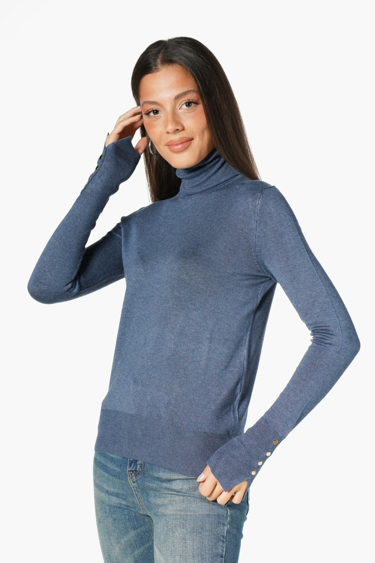 BALIKÇI YAKA KOL DROPLU VİSKON TRİKO – KOYU İNDİGO MELANJ