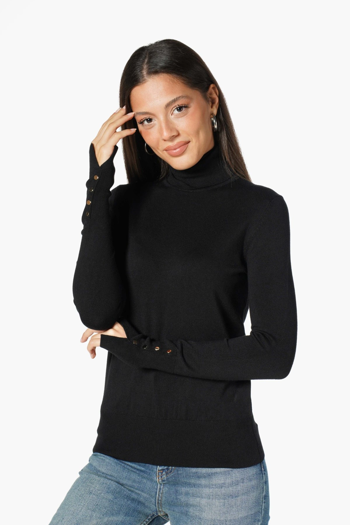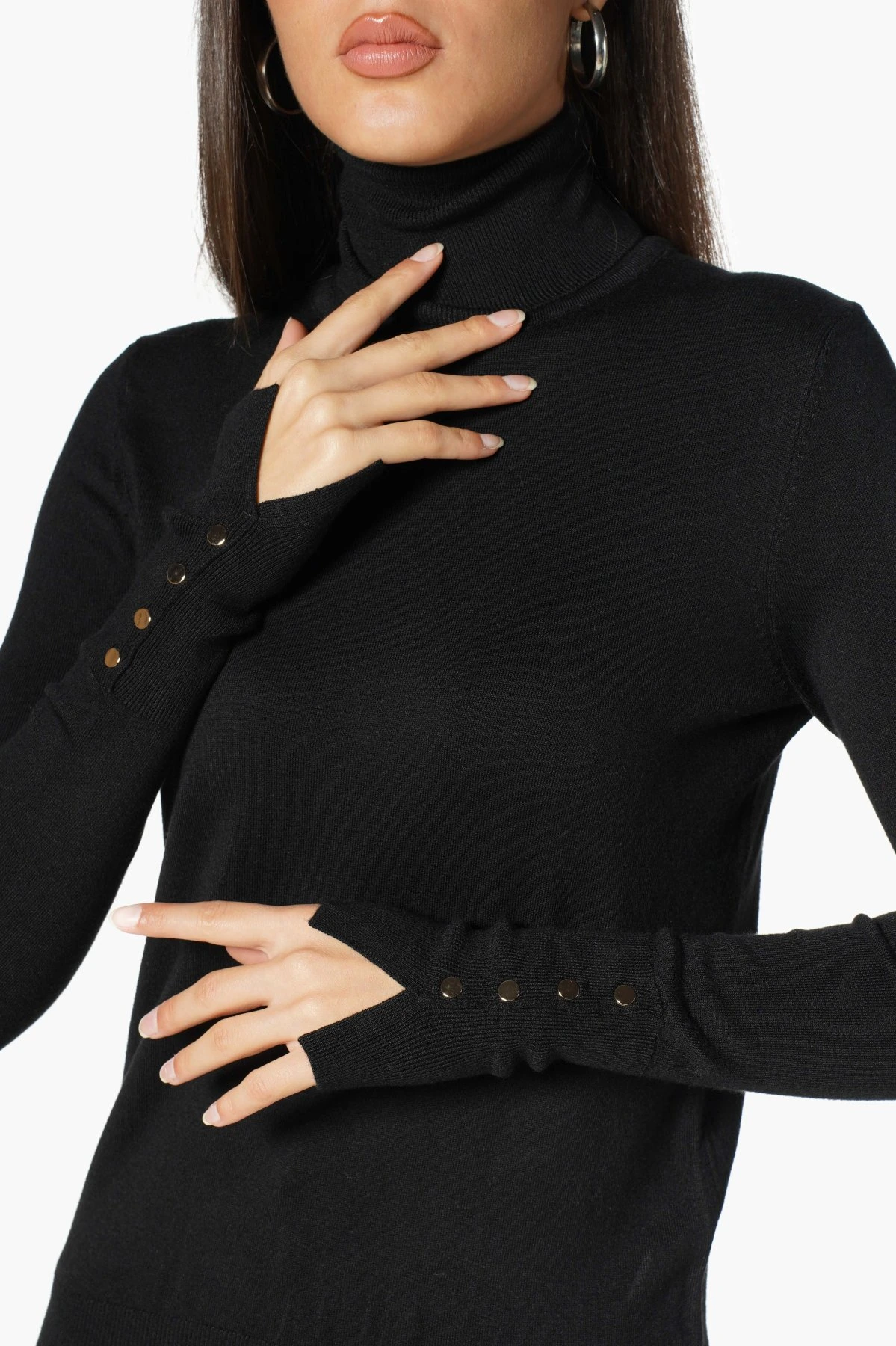 BALIKÇI YAKA KOL DROPLU VİSKON TRİKO – SİYAH