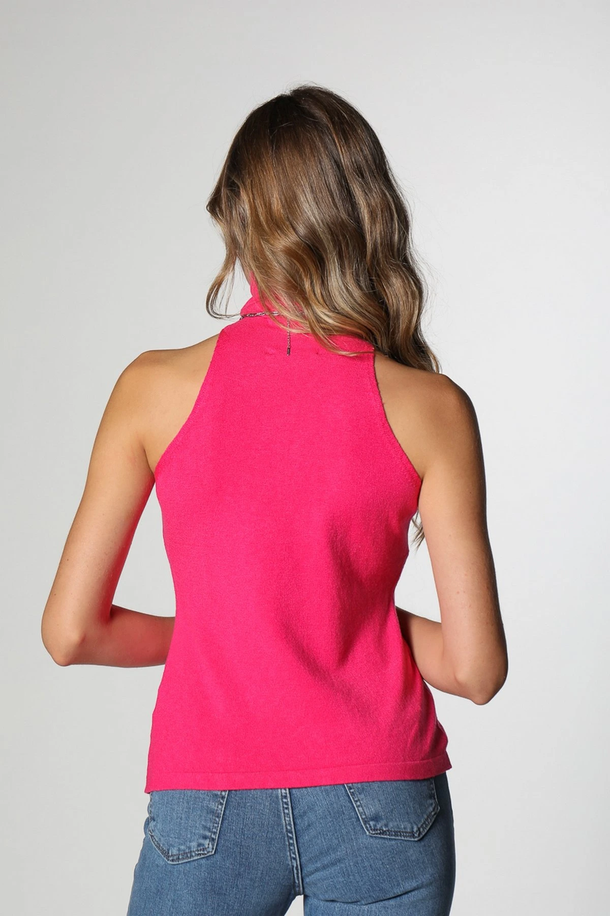 BALIKÇI YAKA SIFIR KOL TRİKO – FUŞYA